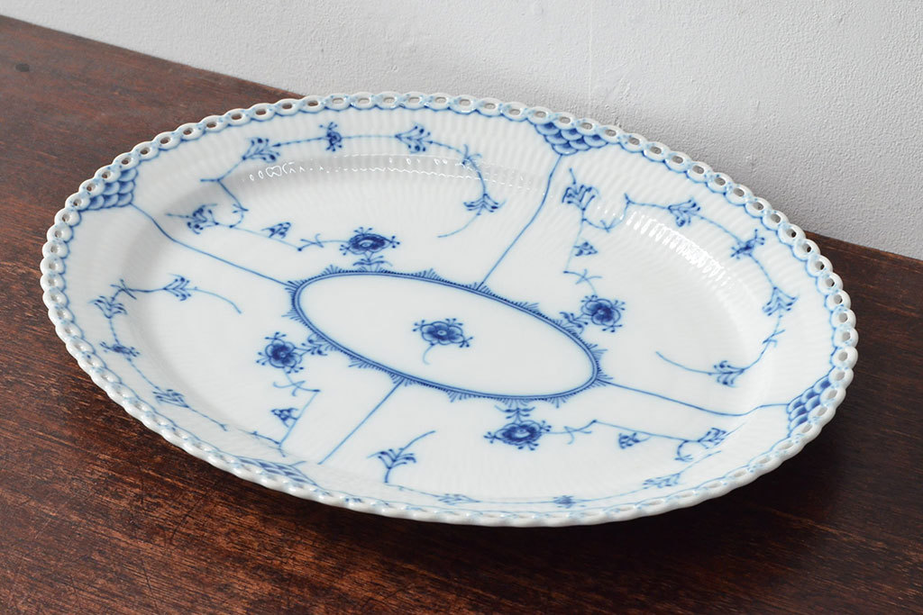 ROYAL COPENHAGEN ロイヤルコペンハーゲン ブルーフルーテッド フルレース オーバルプレート(洋食器)(定価121,000円)(R-052463)です。