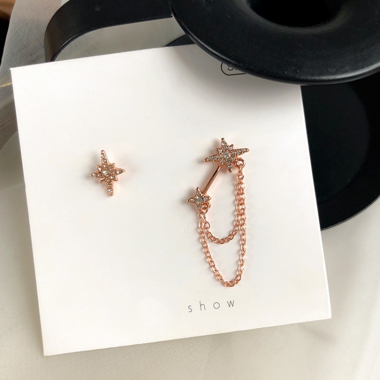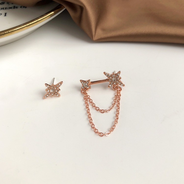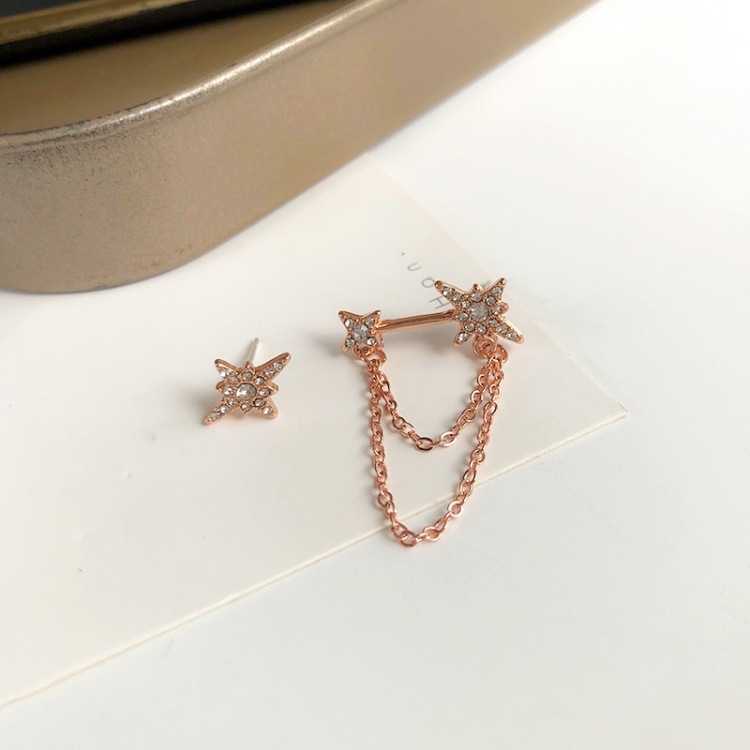 左右非対称のジルコニアピアスになります、ピンクゴールドのお色でとてもかわいいですよ。