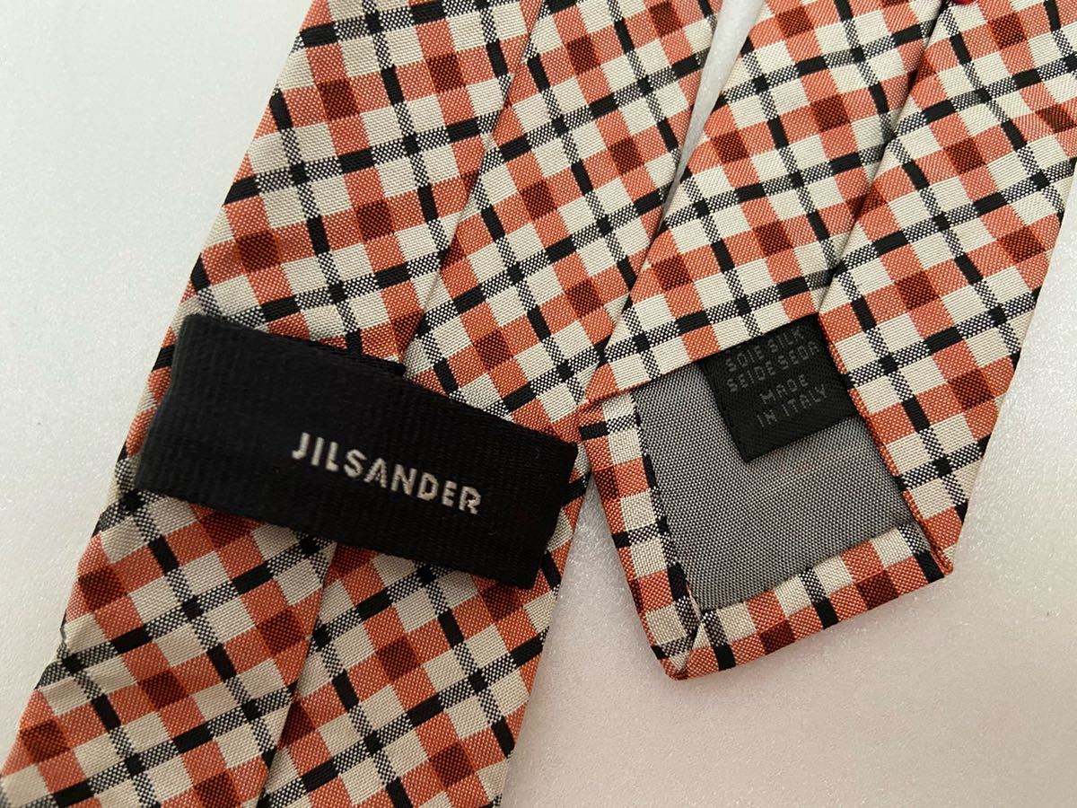 JILSANDER イタリア製シルクネクタイ チェック 格子柄 ナロータイ 細身 ジルサンダー 美品