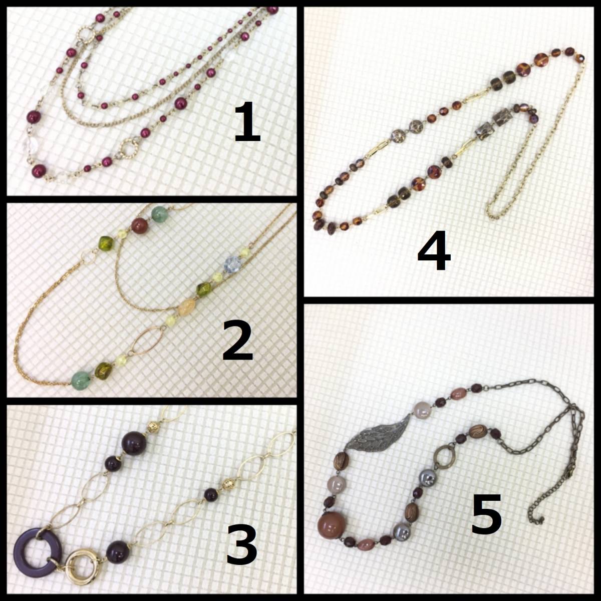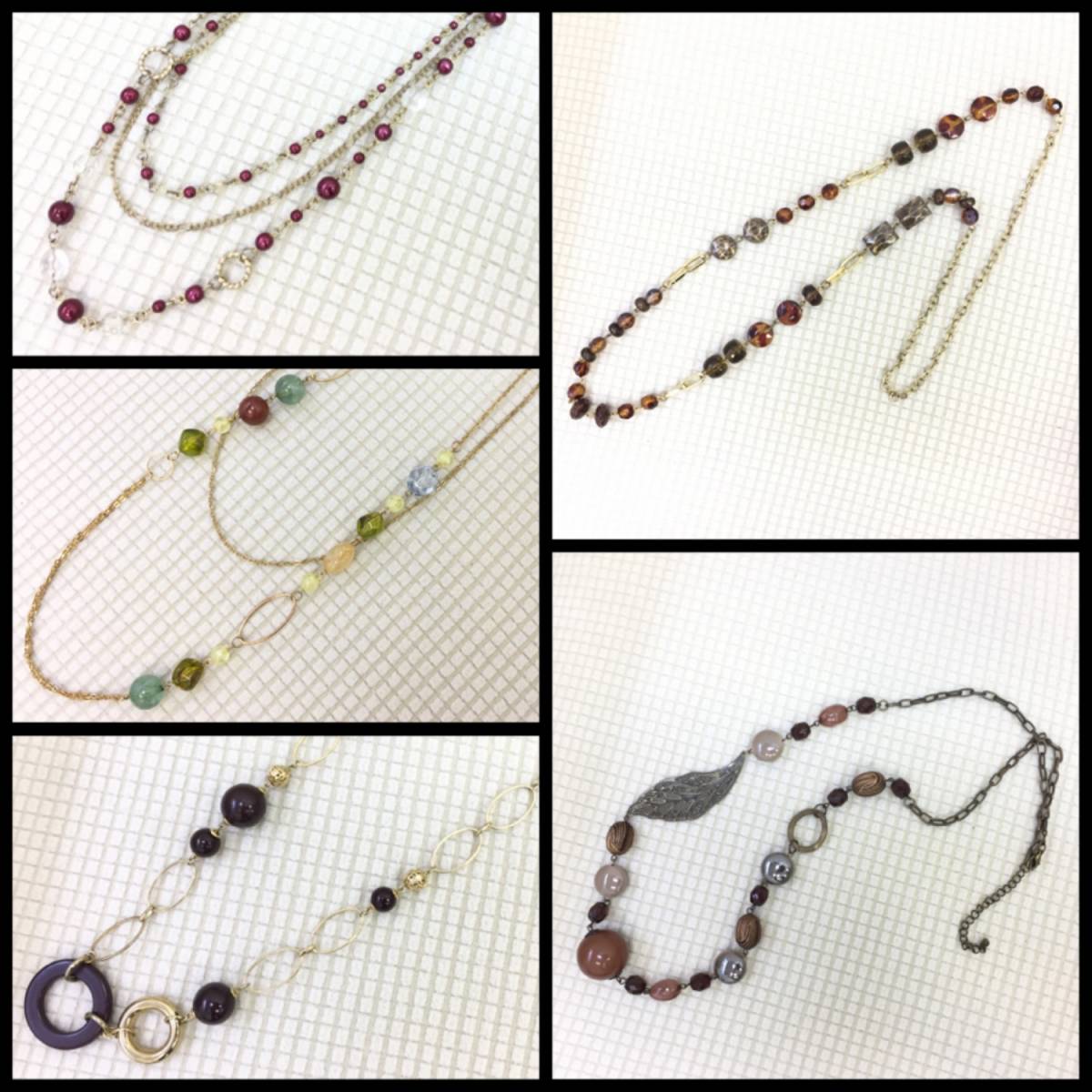 主にビーズなどを使用したロングサイズのネックレスを集めました。
