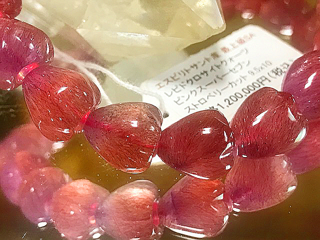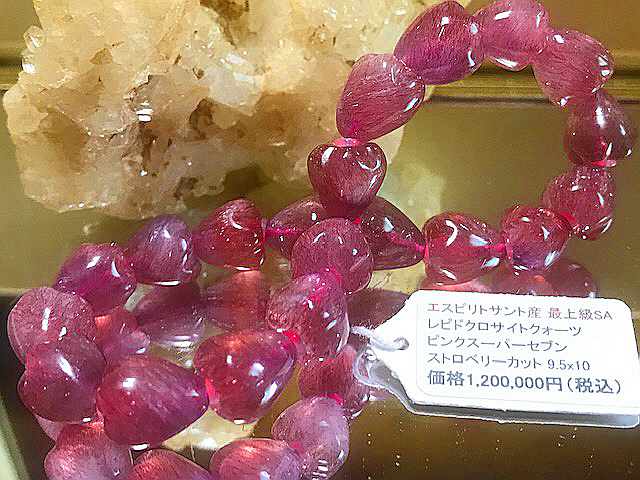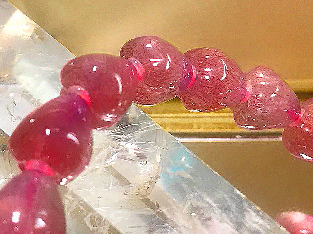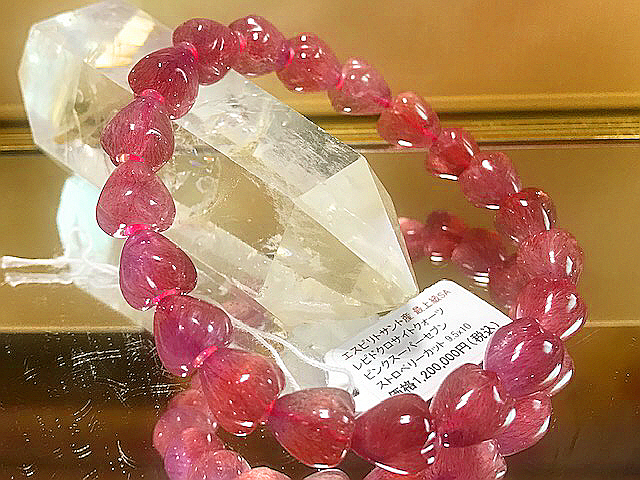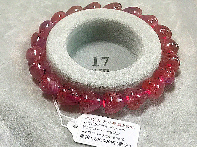 最上級SA『ピンクスーパーセブン』レピドクロサイトクォーツ苺カットブレスレット9.5㎜X10㎜ 内寸17 細身男性サイズ 入手困難完全別格品