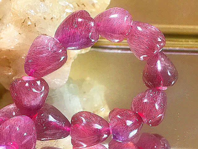 スーパーセブンの原石の赤&ピンクの部分だけをとって作ったとても希少なブレスレットです(*^^)v