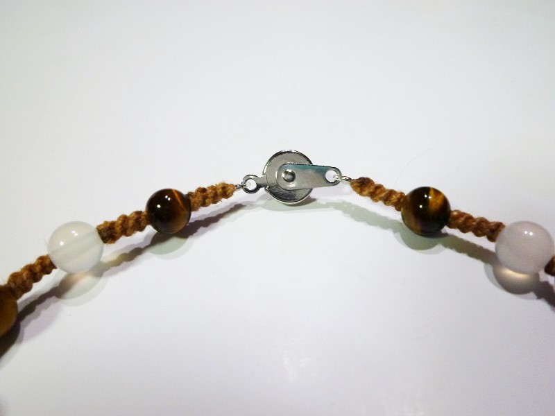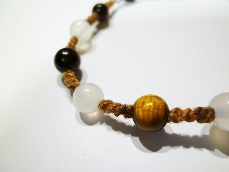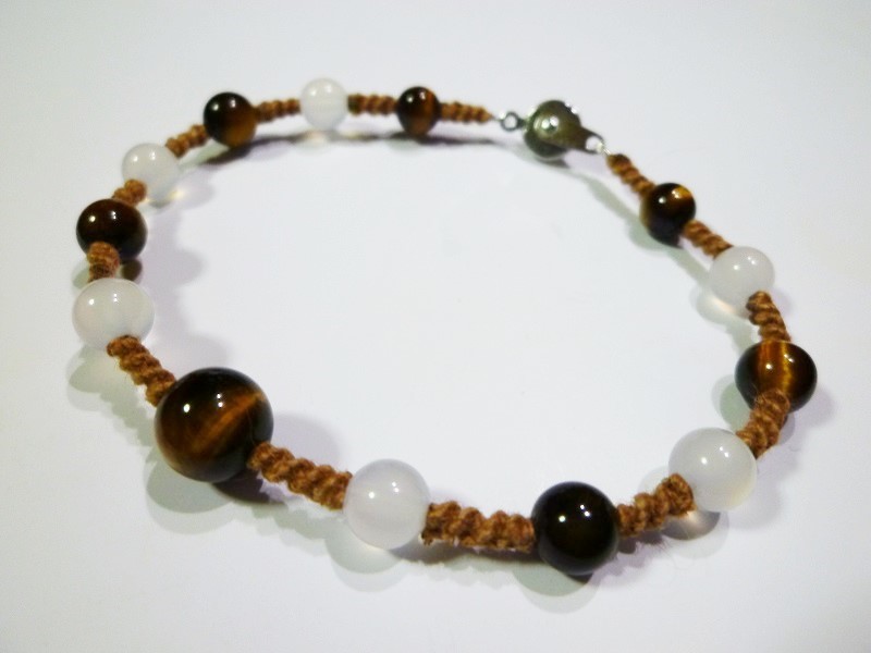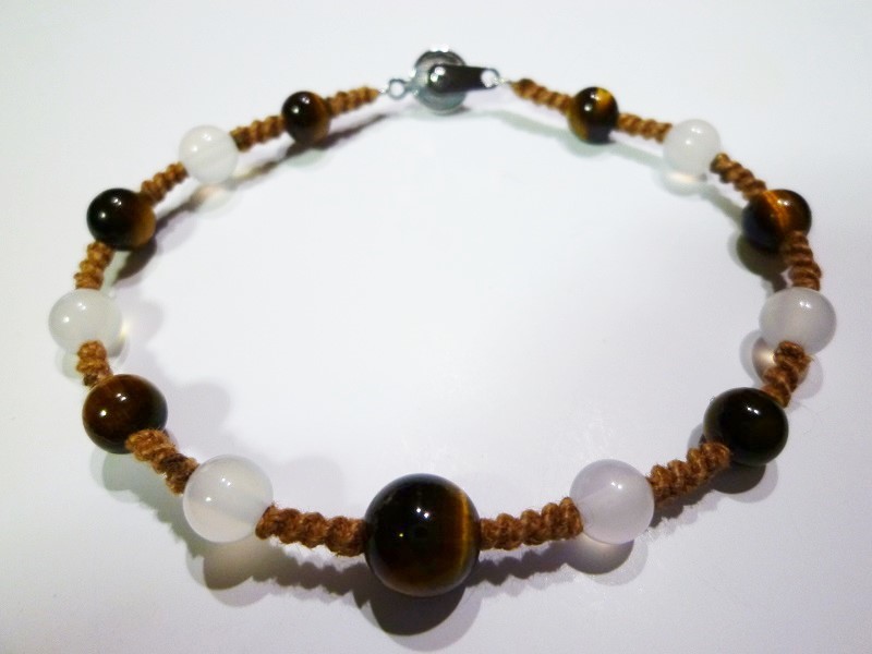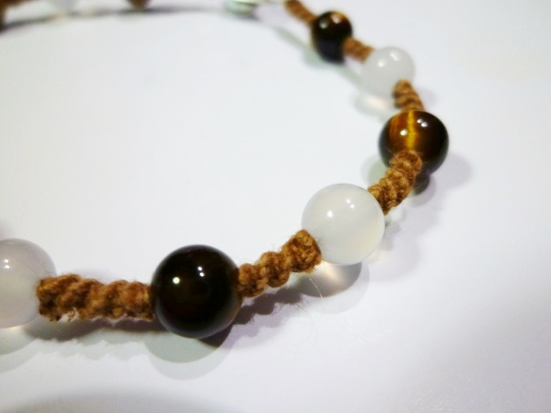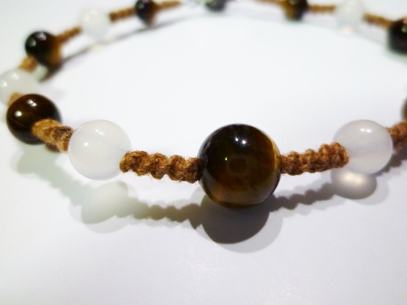 タイガーアイ ホワイトカルセドニー 手編みブレスレット
