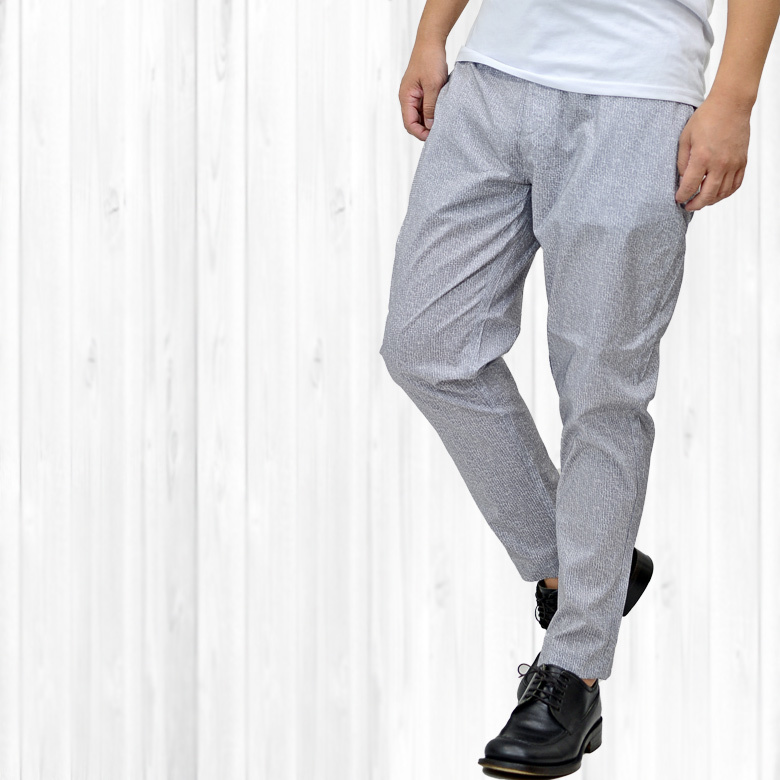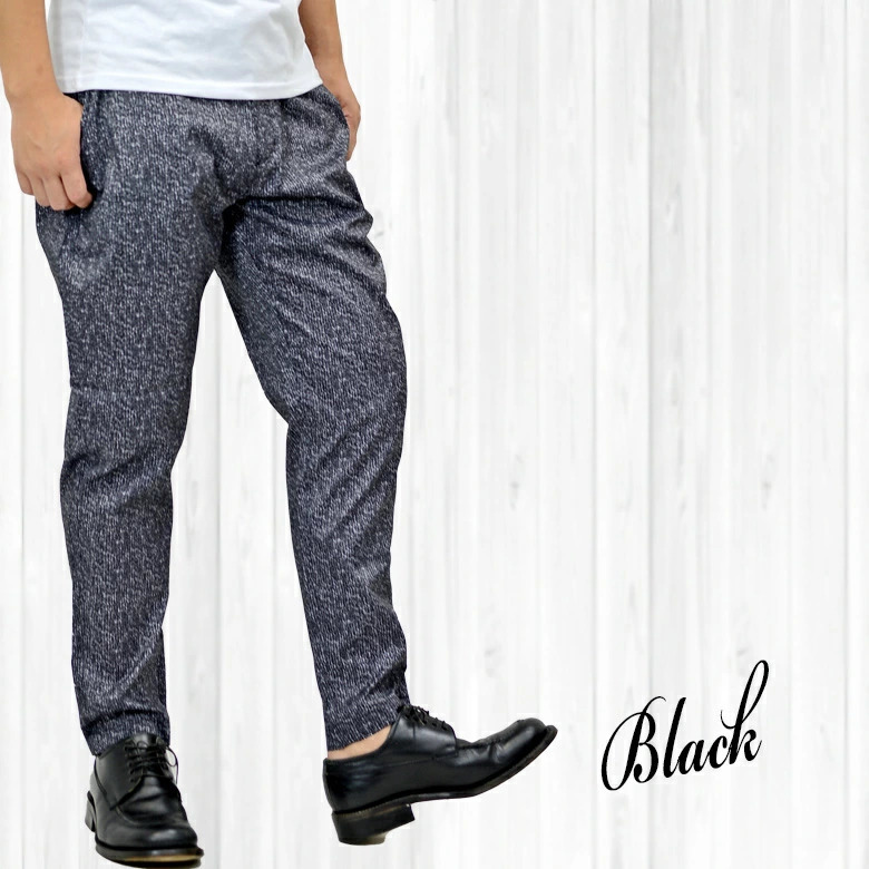 細かな杢調がこなれ感を演出する昇華転写プリントテーパードパンツ。