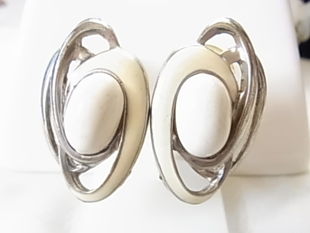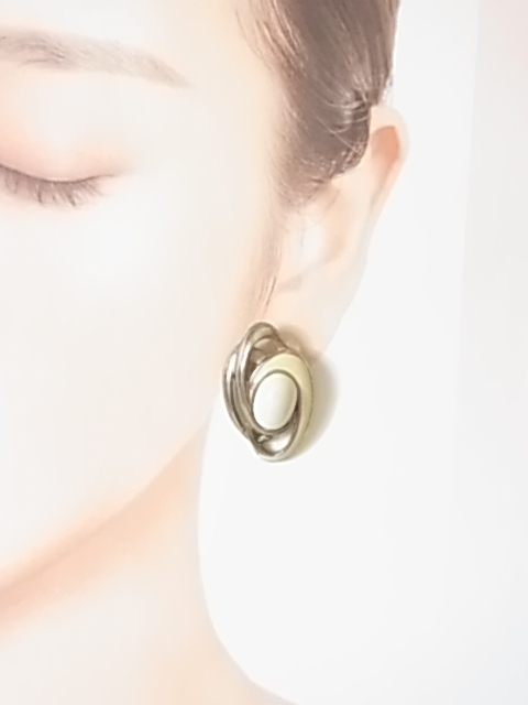 ニュートラ調デザイン 中央の楕円のホワイトが涼しげな印象 インパクト感も素敵なピアス♪