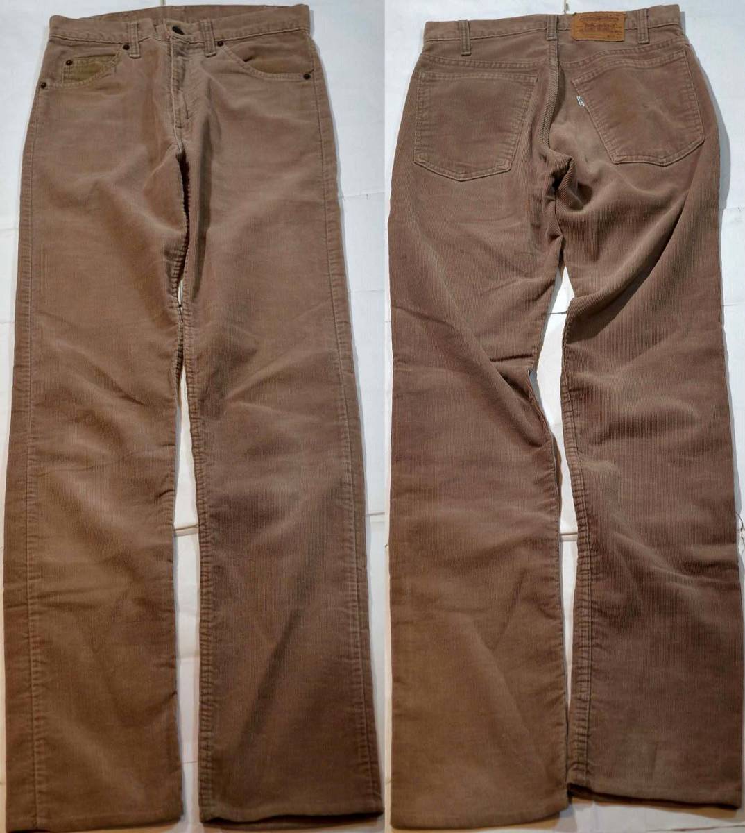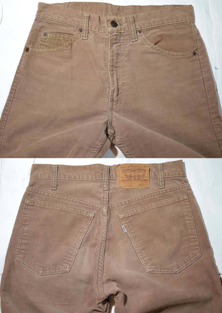 リーバイスコーデュロイパンツの505です。『ディテール紹介』70年代後半ごろのアメリカ製。タロン42ジッパー、ボタン裏刻印はありますが見えません。『状態』 多少のUSED感はありますが、ノーダメージ、ノーリペアの極上品です。『補足』合わせやすいベージュ色のコーデュロイ、細身のストレートパンツです。 ウエストはかなり大きめ(実寸31インチ程度)で細身で少し長身の方が穿きやすいサイズではないでしょうか。