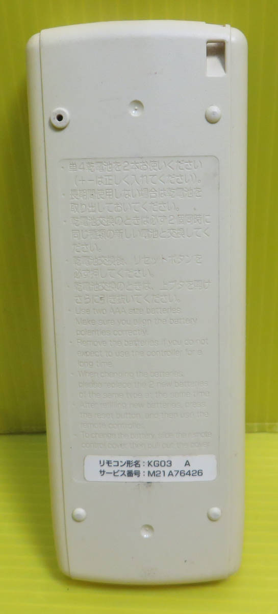 即発送!M-2291■MITSUBISHI 三菱 エアコン用リモコン KG03  動作品 保証付