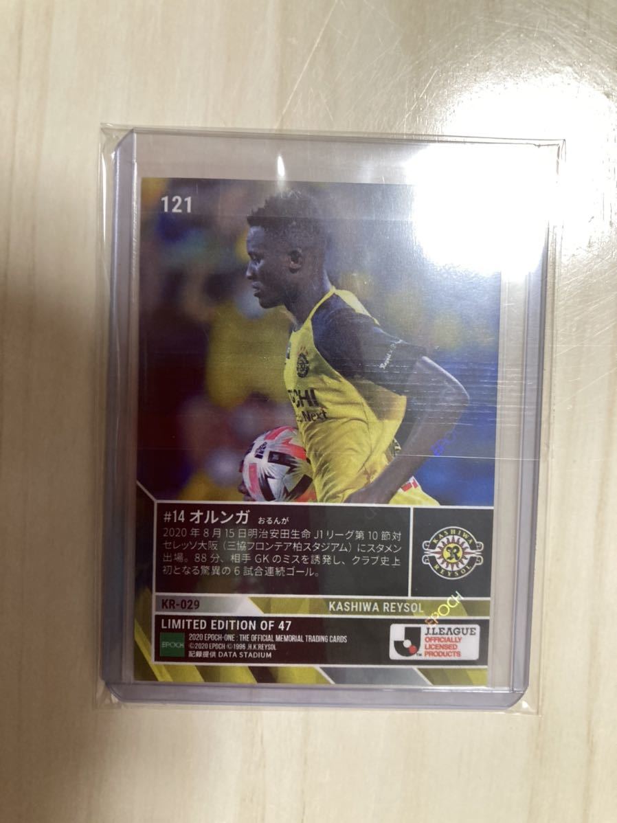 新品未使用未開封です。EPOCH ONE エポックワンから期間限定で発売されたカードです。柏レイソル オルンガ選手6試合連続ゴールカードです。47枚限定となります。今となっては新品未使用未開封での入手が不可能なカードです。