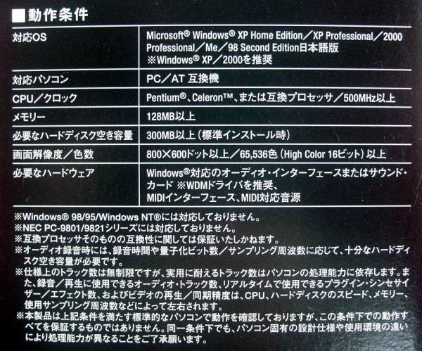 【ソフトウェアの動作環境】掲載画像などを参考にして下さい。