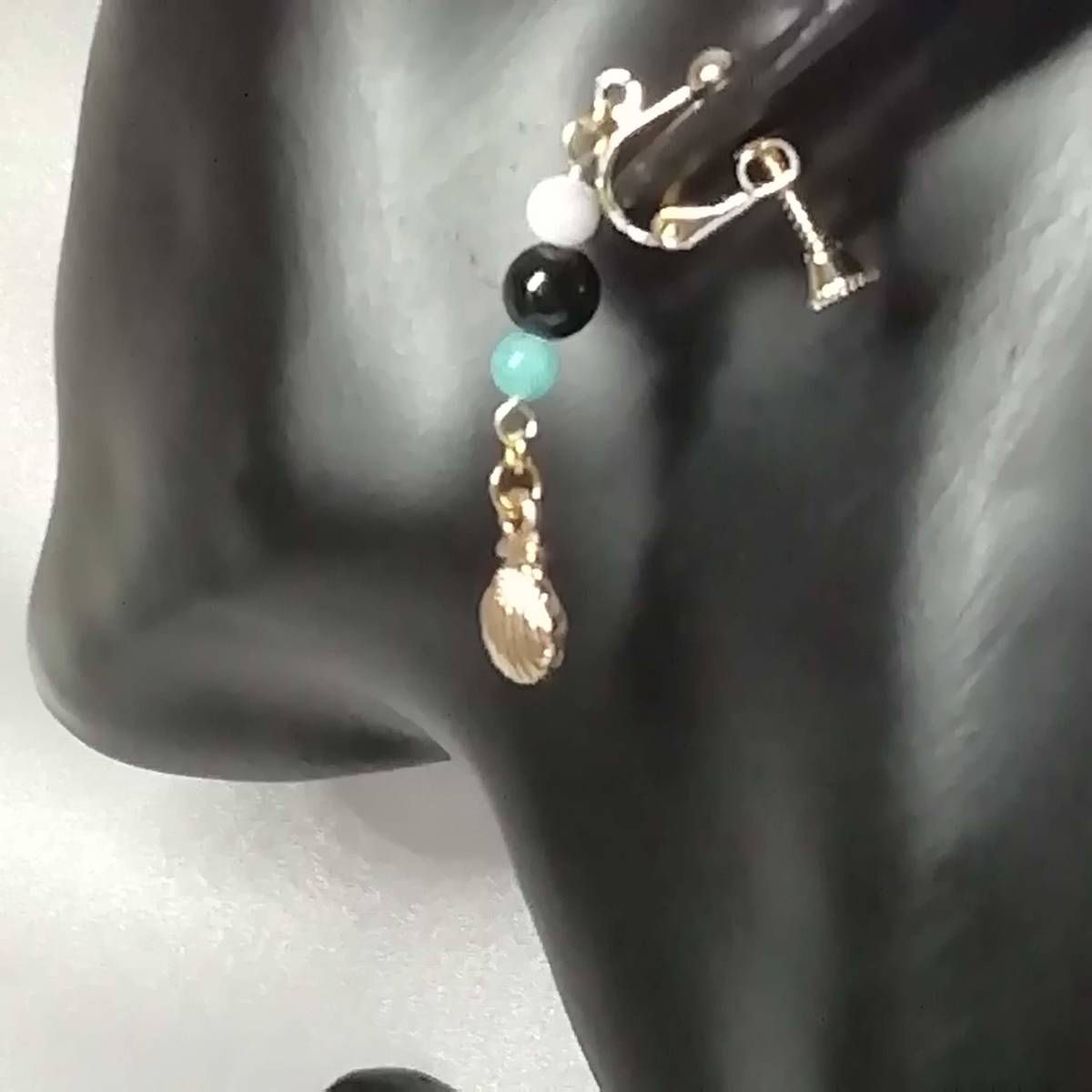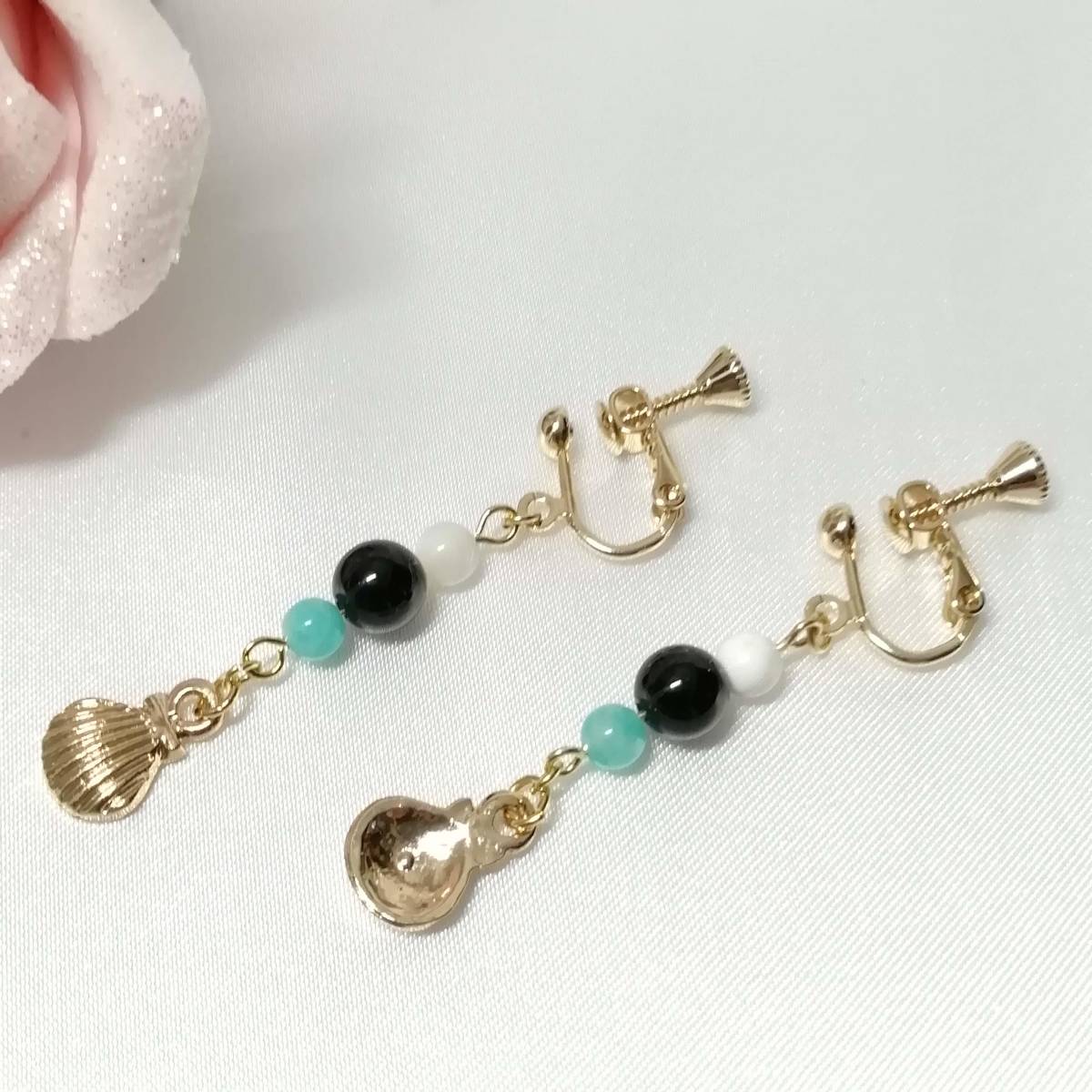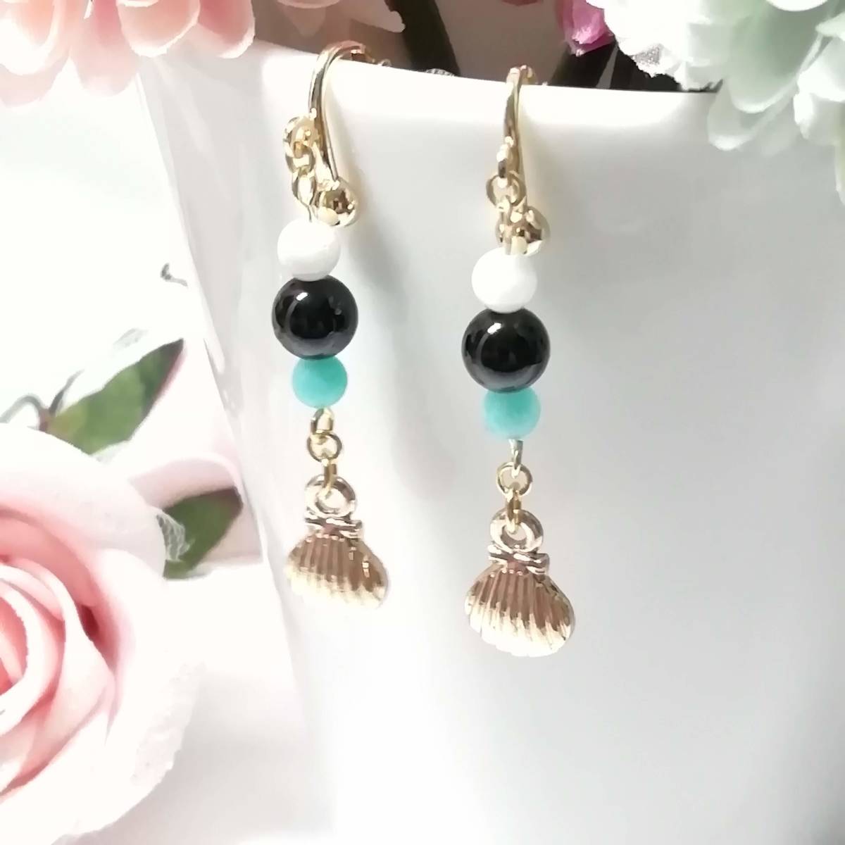 ★商品内容★ 貝チャームと天然石黒水晶のハンドメイドイヤリング/天然石/上品/黒/ゴールド/アマゾナイト/白/マザーオブパール/貝/短め/シンプル/黒水晶 白とミントグリーンにブラックを加えて メリハリのあるスッキリとした印象に仕上げました*・.**.☆・。**。**。・ 短めサイズで普段使いはもちろん、 オフィスやお洒落のワンポイントにも最適です*・**.☆・。**.・**。・. 【素材】 天然石アマゾナイト(天河石)4mm 天然石マザーオブパール(真珠母貝)ホワイト4mm 天然石黒水晶(モリオン チベット産)6mm 貝チャームゴールド15mmx9mm カンより垂れ下がる長さは、約4㎝です。 Eー713 【天然石豆知識】 ◆アマゾナイト(和名 天河石) 青緑色の石で南米のアマゾン川で発見されたところからアマゾナイトと名づけられました(実際にはアマゾンでの産出は無いそうです) 石言葉は『聖なる愛情。』 ネガティブな感情を鎮め、心を安定させることで、理性的な思考の手助けをしてくれます。 古くから、希望と幸運を引き寄せる「希望の石」とも呼ばれ珍重されてきたアマゾナイトは、 夢や自己の実現をサポートしてくれる働きがあるといわれています。 「冒険と夢の石」ともいわれ、見果てぬ夢を追いかける時には、それを実現させるための努力に力を貸してくれるのだそうです。 また、心に迷いがある時には優しく語りかけ、希望の光をもたらし、進むべき道へと導いてくれるともいわれています。 ◆マザーオブパール(白蝶貝) 真珠母貝 ミルキーホワイトの貝殻特有の模様が美しい、真珠を作り出す母貝。 海のパワーを持ち、子宝や繁栄を象徴するとして、古くから子育てや安産のお守りとして親しまれてきたと伝えられています。 母性愛を高め、女性が内面に持つ魅力・愛情・慈しみの感情を育み、育児などで疲れやすい精神を安定させ、安らぎを与えてくれる力があると言われています。。 ◆モリオン(黒水晶) チベット産 石言葉 『規律と守護』 モリオンは数ある石の中でもおそらく最も強力な邪気払い、魔よけの石の一つと言えるでしょう。 邪気・悪念・不安・恐怖など、あらゆるマイナスエネルギーから持ち主を強力に守ってくれると言われています。 空間の浄化にも役立ち、玄関や家族の集まる居間などに置く事で強力な浄化・守護になります。 また、車を運転する方には車内に置く事で、事故などからの魔除けとなる事でしょう。 その他モリオンは、その漆黒の風貌からは想像しがたいのですが、強力な浄化作用を持つ石であり、 不幸を寄せ付けないような、強い邪気払いの特性を考えると、持ち主にとっては非常に強力な幸運の石とも呼べるかもしれません。 ★注意事項★ ***~ご購入前に必ずお読み下さい~*** *・*・*落札後について*・*・* *落札後4日以内にお手続き、ご連絡が無い場合は落札者都合で削除致します。 *発送日指定・ご入金の予定が1週間以上先をお考えの方は、入札の前に質問よりご連絡くださいませ。 予めご了承の上、ノークレーム・ノーリターンでお願い致します。 *・*・*商品について*・*・* *一点一点心を込めて作っておりますが、手作りなため多少の歪み等あるかもしれません。 手作りの味わいと、世界で一つだけの作品とお考えいただければ幸いです。 *デリケートな商品ですので、強く引っ張ったりすると破損する事もあります。 お取り扱いにはご注意ください。 *ご覧のPC、スマホによっては画像と実物の色味が多少異なる場合があります。 *基本イヤリング金具は跳ね上げネジ付き金具にて作成しております。 **ご希望によりピアスへの変更も承っております。 【フックピアス…無料/キャッチピアス…別途追加料金120円が必要です】 *その他…樹脂ノンホールピアス(無料)・カン付き樹脂ノンホールピアス(別途追加料金20円が必要です)にも変更をお受け致します。 ~ご注文の際にメッセージ欄よりお申し付け下さい~ 尚、金具変更のご希望が無い場合は、掲載された写真の金具にてお送り致します。 *金属アレルギーや化学物質アレルギーなどへの対応はしておりませんので、ご心配な方はご遠慮下さいますようお願い致します。 *永くご愛用頂くために、ご使用後は柔らかい布等で軽く拭いてください。 *・*・*プレゼント用梱包のご要望もお受けいたします*・*・* *その際は、梱包費用が別途で必要となりますのでご注意ください。 また、ご希望の梱包タイプによって、発送方法が変わりますので、送料が別途必要となります。 プレゼント用梱包タイプ 【袋→100円】 発送方法【クリックポスト(送料無料)】 プレゼント用梱包タイプ 【箱→200円】 発送方法【レターパックプラス(別途520円)】 袋タイプは【合計100円の追加料金が必要です】、箱タイプは【合計720円の追加料金が必要です】となります。 ◆ご希望の場合は、必ず商品ページをウォッチリストに登録した上で落札前に質問にてお問合せ下さい。◆ ◆ご希望を承り次第、一度出品を取り消し、プレゼント用梱包費用、送料などを追加した