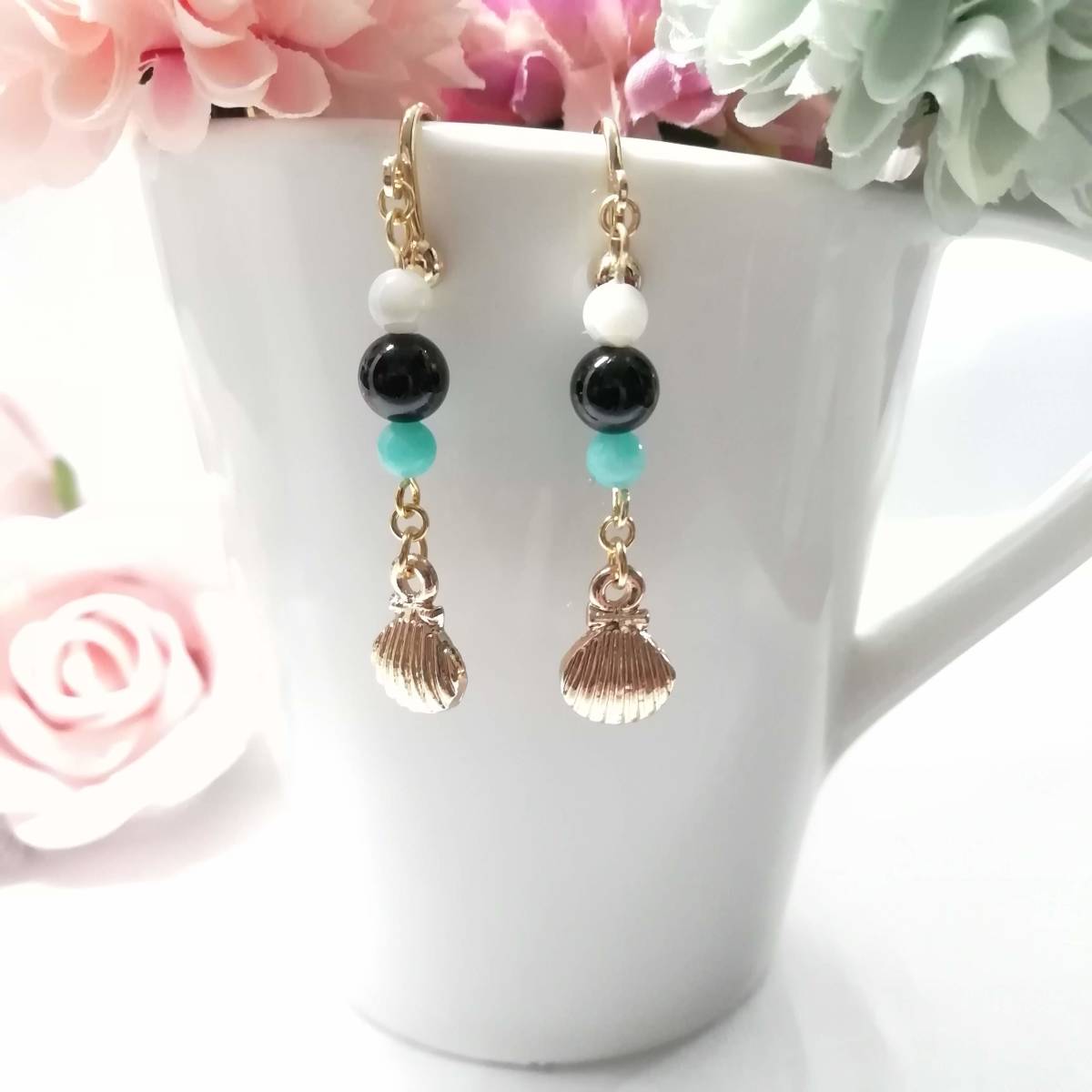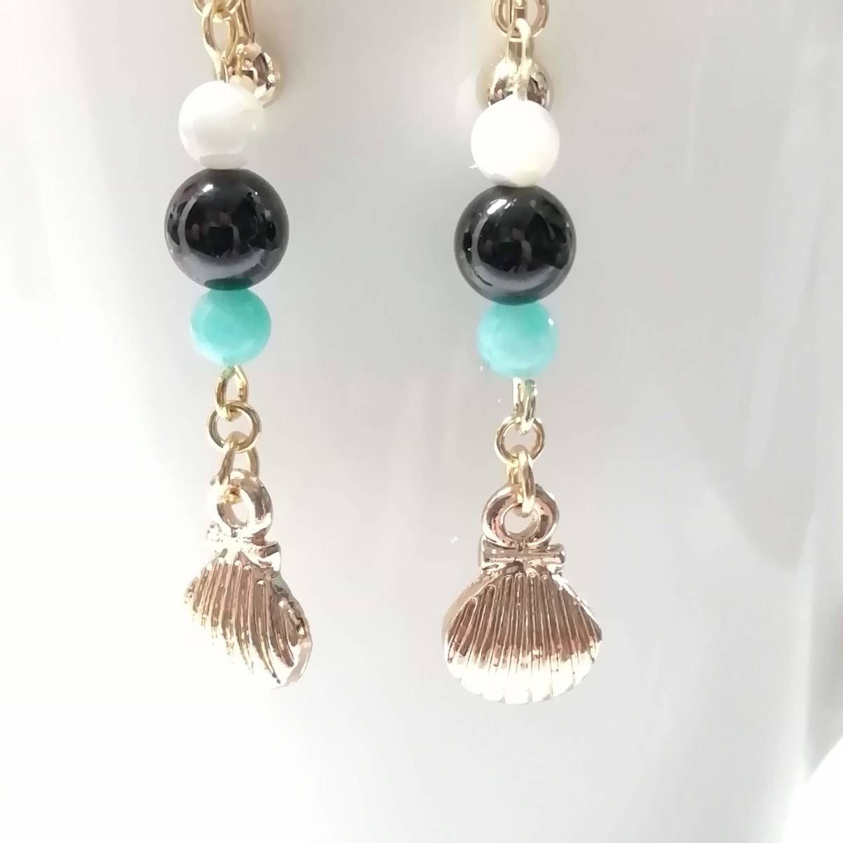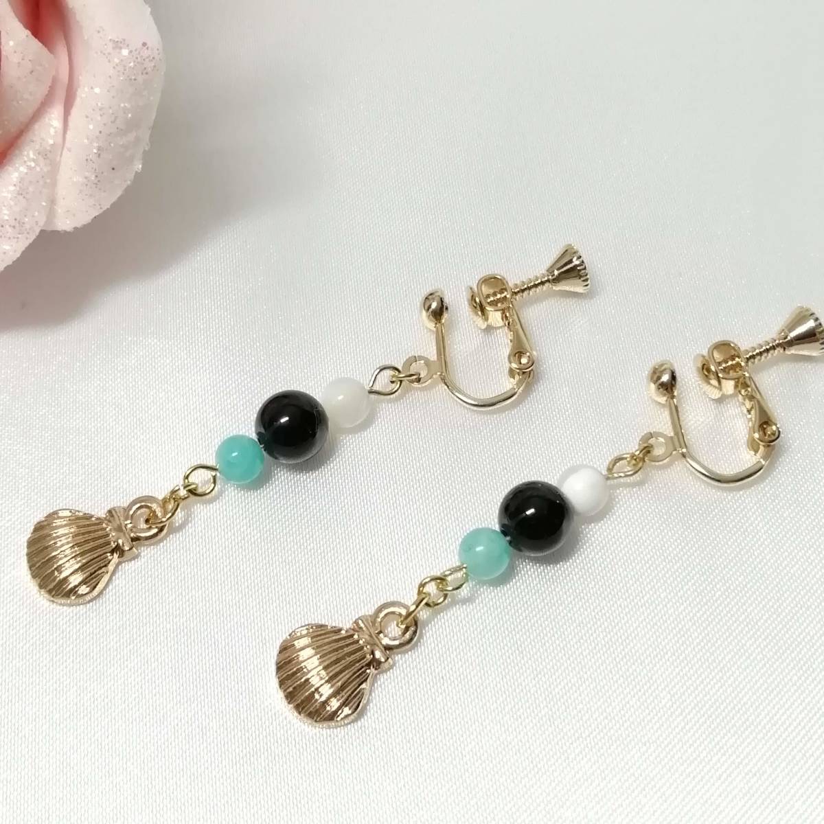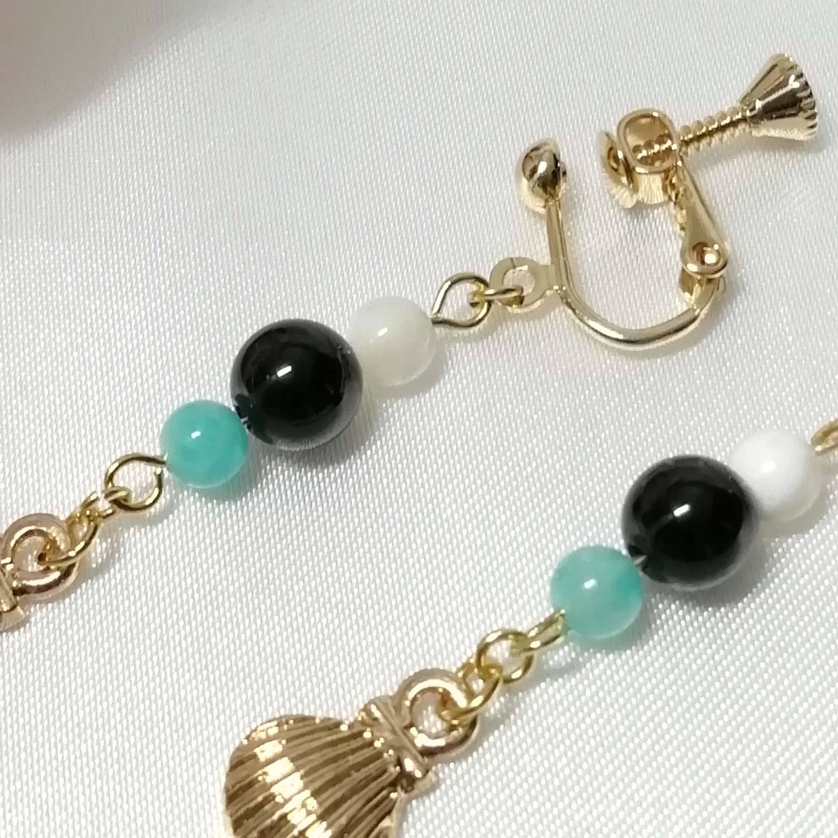 ★商品内容★ 貝チャームと天然石黒水晶のハンドメイドイヤリング/天然石/上品/黒/ゴールド/アマゾナイト/白/マザーオブパール/貝/短め/シンプル/黒水晶 白とミントグリーンにブラックを加えて メリハリのあるスッキリとした印象に仕上げました*・.**.☆・。**。**。・ 短めサイズで普段使いはもちろん、 オフィスやお洒落のワンポイントにも最適です*・**.☆・。**.・**。・. 【素材】 天然石アマゾナイト(天河石)4mm 天然石マザーオブパール(真珠母貝)ホワイト4mm 天然石黒水晶(モリオン チベット産)6mm 貝チャームゴールド15mmx9mm カンより垂れ下がる長さは、約4㎝です。 Eー713 【天然石豆知識】 ◆アマゾナイト(和名 天河石) 青緑色の石で南米のアマゾン川で発見されたところからアマゾナイトと名づけられました(実際にはアマゾンでの産出は無いそうです) 石言葉は『聖なる愛情。』 ネガティブな感情を鎮め、心を安定させることで、理性的な思考の手助けをしてくれます。 古くから、希望と幸運を引き寄せる「希望の石」とも呼ばれ珍重されてきたアマゾナイトは、 夢や自己の実現をサポートしてくれる働きがあるといわれています。 「冒険と夢の石」ともいわれ、見果てぬ夢を追いかける時には、それを実現させるための努力に力を貸してくれるのだそうです。 また、心に迷いがある時には優しく語りかけ、希望の光をもたらし、進むべき道へと導いてくれるともいわれています。 ◆マザーオブパール(白蝶貝) 真珠母貝 ミルキーホワイトの貝殻特有の模様が美しい、真珠を作り出す母貝。 海のパワーを持ち、子宝や繁栄を象徴するとして、古くから子育てや安産のお守りとして親しまれてきたと伝えられています。 母性愛を高め、女性が内面に持つ魅力・愛情・慈しみの感情を育み、育児などで疲れやすい精神を安定させ、安らぎを与えてくれる力があると言われています。。 ◆モリオン(黒水晶) チベット産 石言葉 『規律と守護』 モリオンは数ある石の中でもおそらく最も強力な邪気払い、魔よけの石の一つと言えるでしょう。 邪気・悪念・不安・恐怖など、あらゆるマイナスエネルギーから持ち主を強力に守ってくれると言われています。 空間の浄化にも役立ち、玄関や家族の集まる居間などに置く事で強力な浄化・守護になります。 また、車を運転する方には車内に置く事で、事故などからの魔除けとなる事でしょう。 その他モリオンは、その漆黒の風貌からは想像しがたいのですが、強力な浄化作用を持つ石であり、 不幸を寄せ付けないような、強い邪気払いの特性を考えると、持ち主にとっては非常に強力な幸運の石とも呼べるかもしれません。 ★注意事項★ ***~ご購入前に必ずお読み下さい~*** *・*・*落札後について*・*・* *落札後4日以内にお手続き、ご連絡が無い場合は落札者都合で削除致します。 *発送日指定・ご入金の予定が1週間以上先をお考えの方は、入札の前に質問よりご連絡くださいませ。 予めご了承の上、ノークレーム・ノーリターンでお願い致します。 *・*・*商品について*・*・* *一点一点心を込めて作っておりますが、手作りなため多少の歪み等あるかもしれません。 手作りの味わいと、世界で一つだけの作品とお考えいただければ幸いです。 *デリケートな商品ですので、強く引っ張ったりすると破損する事もあります。 お取り扱いにはご注意ください。 *ご覧のPC、スマホによっては画像と実物の色味が多少異なる場合があります。 *基本イヤリング金具は跳ね上げネジ付き金具にて作成しております。 **ご希望によりピアスへの変更も承っております。 【フックピアス…無料/キャッチピアス…別途追加料金120円が必要です】 *その他…樹脂ノンホールピアス(無料)・カン付き樹脂ノンホールピアス(別途追加料金20円が必要です)にも変更をお受け致します。 ~ご注文の際にメッセージ欄よりお申し付け下さい~ 尚、金具変更のご希望が無い場合は、掲載された写真の金具にてお送り致します。 *金属アレルギーや化学物質アレルギーなどへの対応はしておりませんので、ご心配な方はご遠慮下さいますようお願い致します。 *永くご愛用頂くために、ご使用後は柔らかい布等で軽く拭いてください。 *・*・*プレゼント用梱包のご要望もお受けいたします*・*・* *その際は、梱包費用が別途で必要となりますのでご注意ください。 また、ご希望の梱包タイプによって、発送方法が変わりますので、送料が別途必要となります。 プレゼント用梱包タイプ 【袋→100円】 発送方法【クリックポスト(送料無料)】 プレゼント用梱包タイプ 【箱→200円】 発送方法【レターパックプラス(別途520円)】 袋タイプは【合計100円の追加料金が必要です】、箱タイプは【合計720円の追加料金が必要です】となります。 ◆ご希望の場合は、必ず商品ページをウォッチリストに登録した上で落札前に質問にてお問合せ下さい。◆ ◆ご希望を承り次第、一度出品を取り消し、プレゼント用梱包費用、送料などを追加した