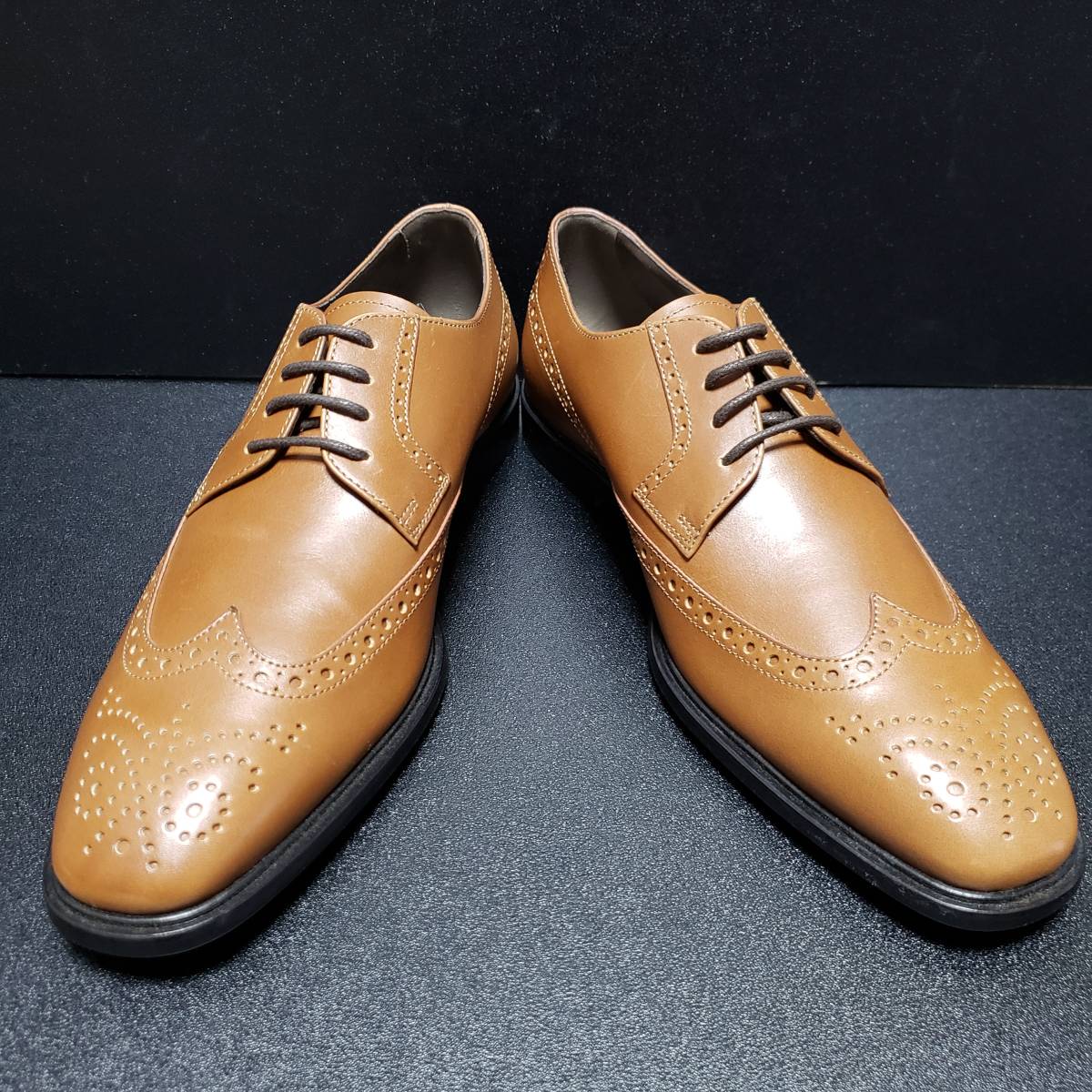 本品は茶色のレザーを使用した4ホール式のフルブローグシューズです。