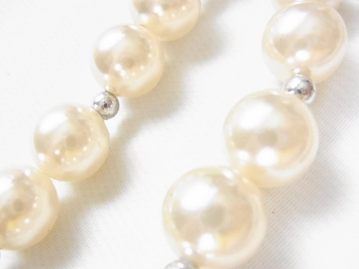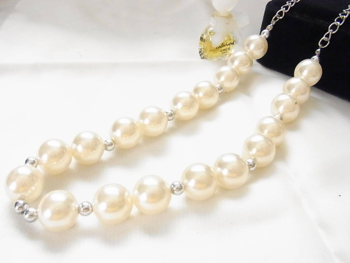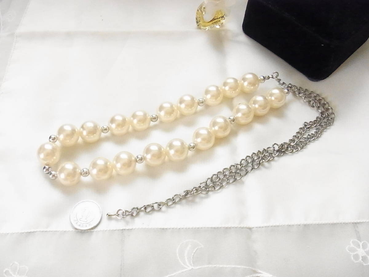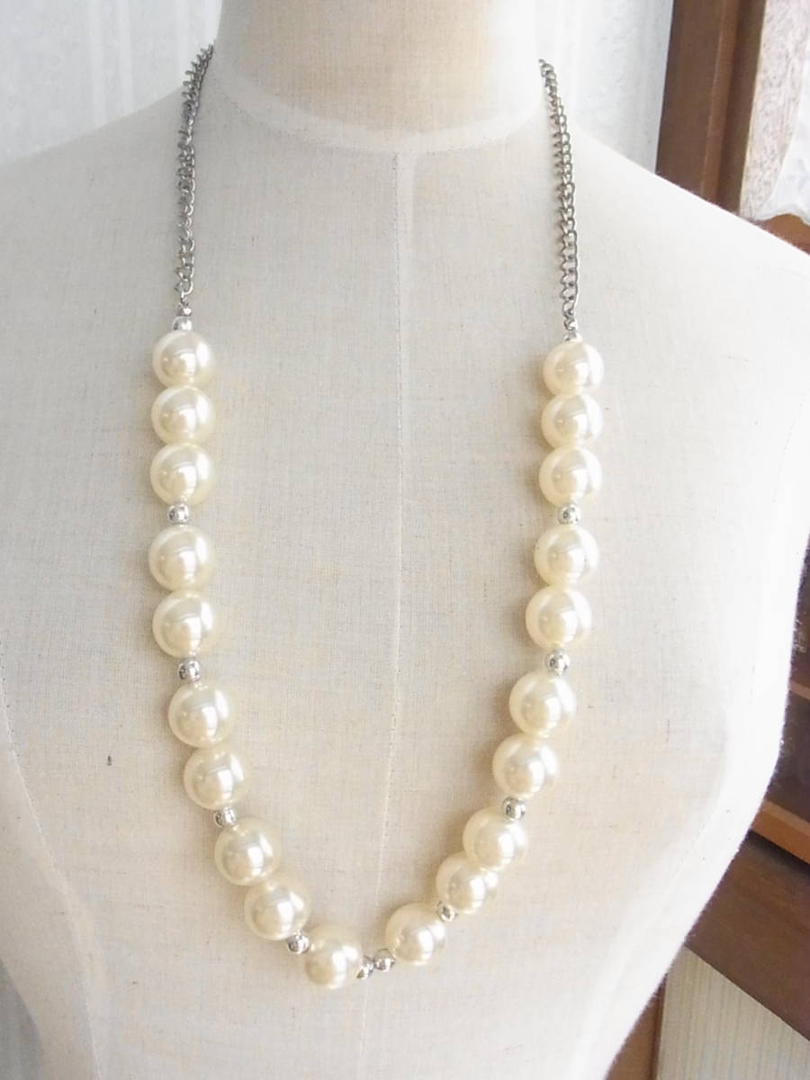 大粒のプラスチックパールにシルバーカラー 銀色とのコンビカラーが素敵 ロングネックレス☆