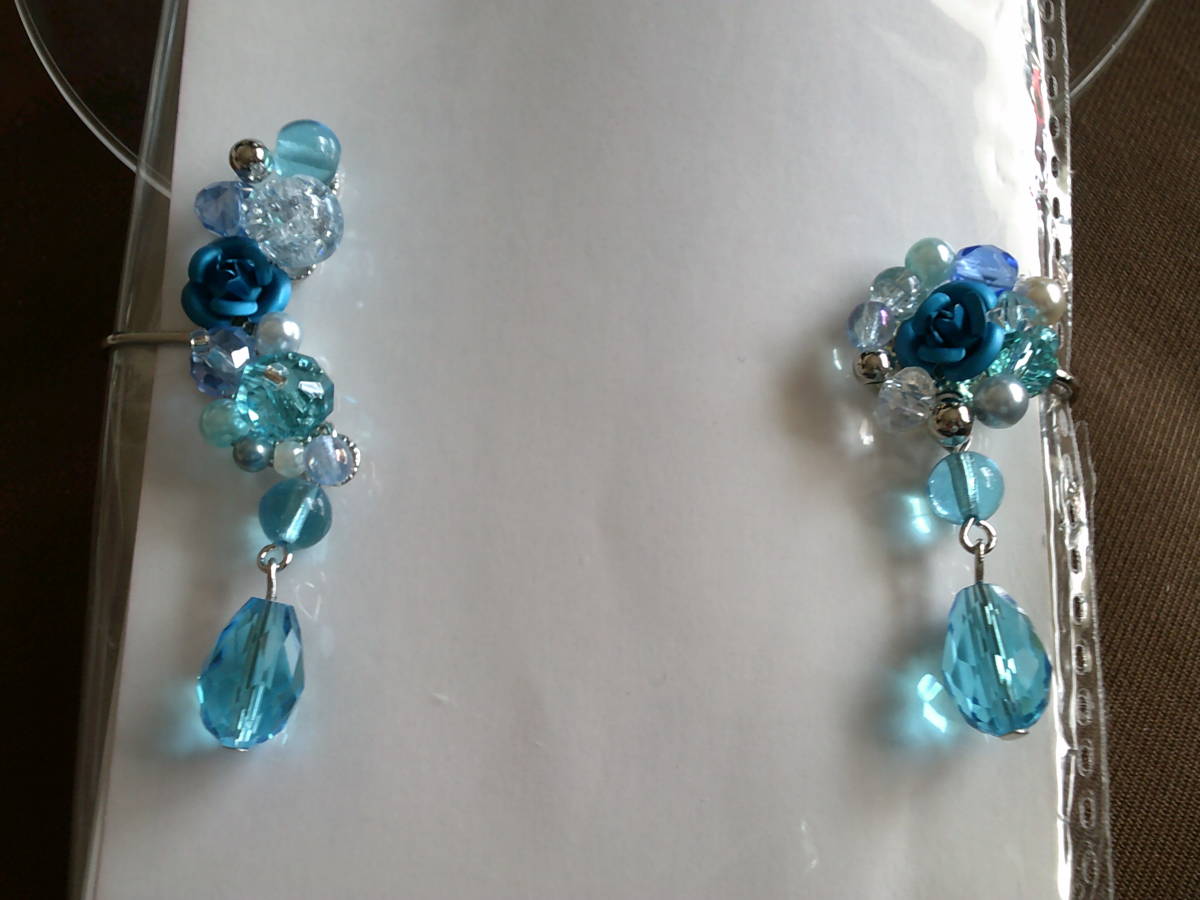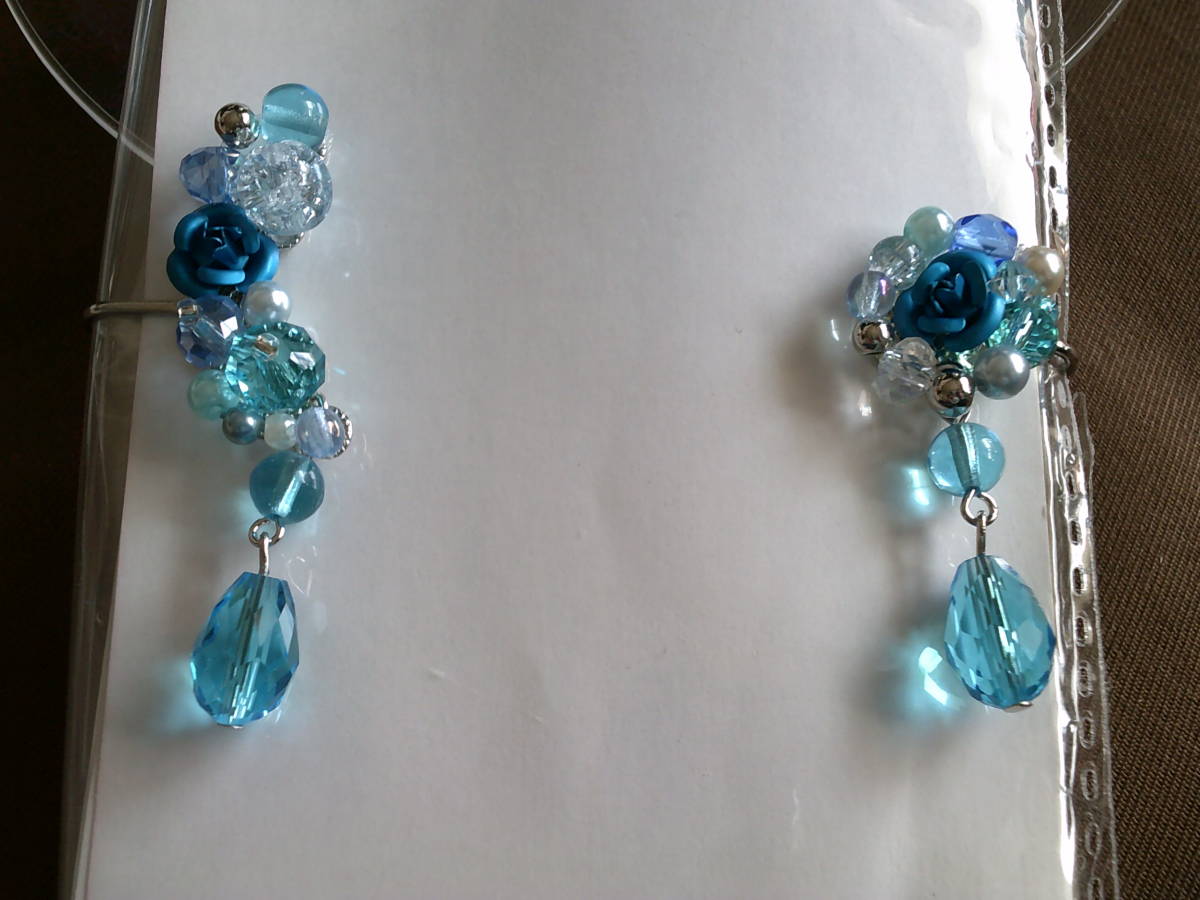 ★★★★ハンドメイド バラとビジューのカプリブルー イヤーカフ 新品★★★★★ | |||