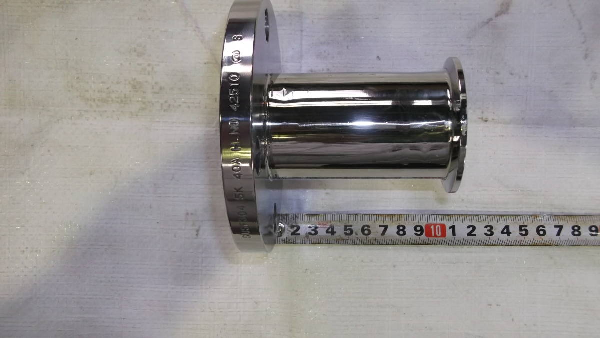 ご覧を頂き有り難うございます。SUS304サニタリー フランヂアダプター40A5kx2s面間100ミリ 中古商品の為キズ・1か所小さい凹み・汚れ等が有ります、念入りに検品を致しておりますが予めご了承ください。