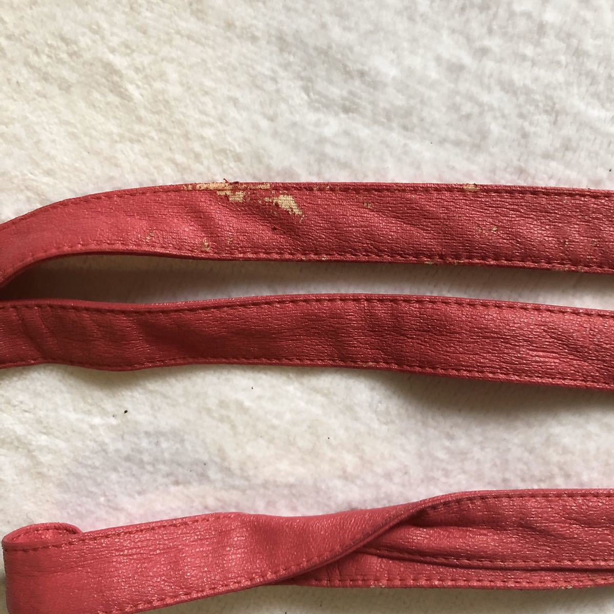 合皮のひもが、保管による劣化でベトつき、
