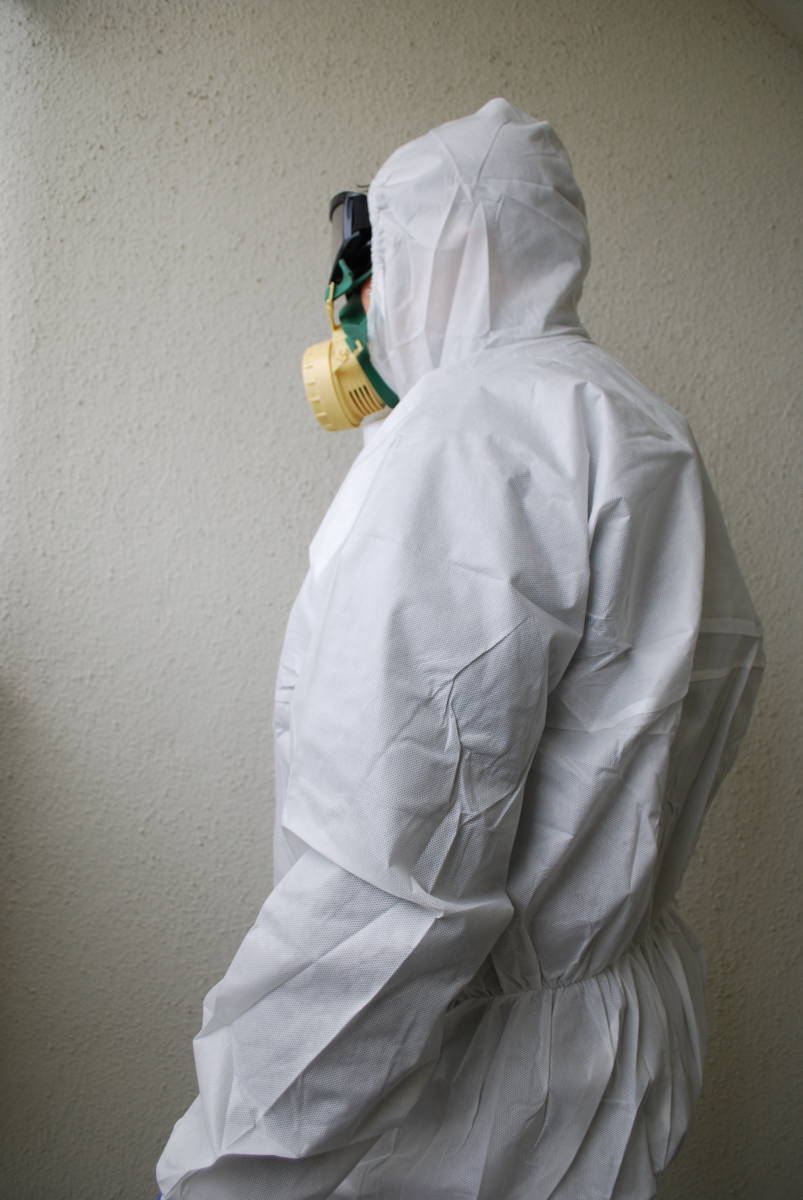 直結式小型防毒マスク GM-12・CA-104N2/OV吸収缶1個+交換用予備吸収缶1個=2個付き(重松製作所)とマイクロガード1500化学防護服+交換用デュポンタイベック化学防護服=2着付き・ゴーグル・手袋(インナー用2組)の8点セットです。吸収缶(保存期限には十分な余裕があります)・ゴーグル・手袋はピッカピカの新品未使用、防毒マスク・化学防護服(ネットに入れて普通に洗濯機で洗う事が出来ます。実証済み)は未使用保管品です。画像を良くご覧の上、ノークレームノーリターンでよろしくお願い致します。