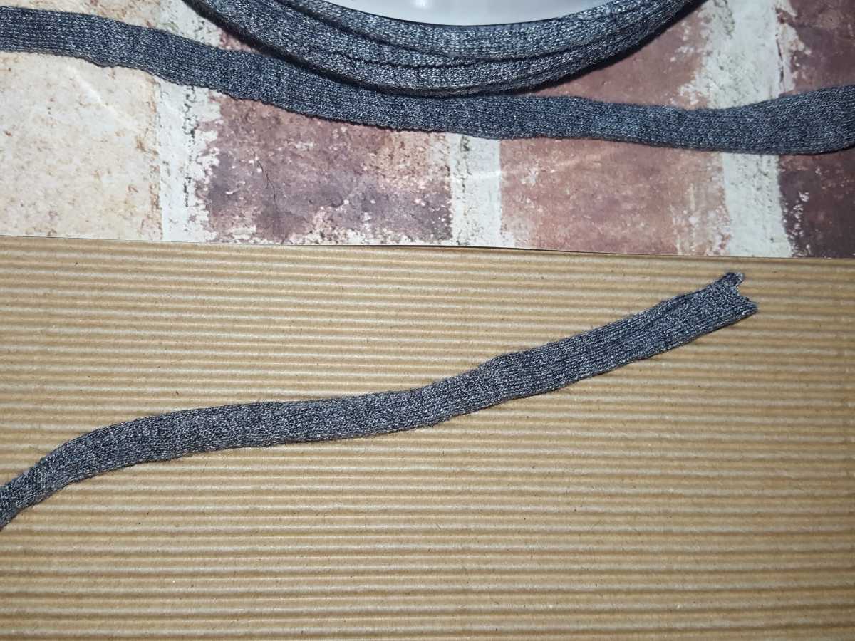 ズバゲッティ糸を5メートルカットしたのも、マスクゴムにつかうと半分の幅にカットしたら、10メートルとれることになります。