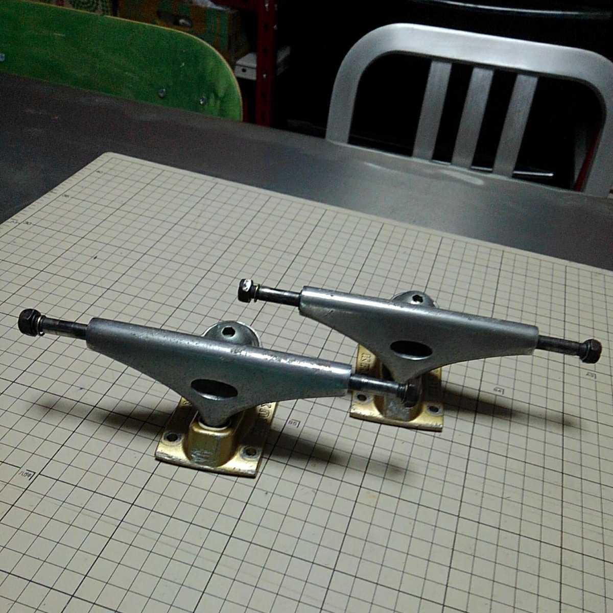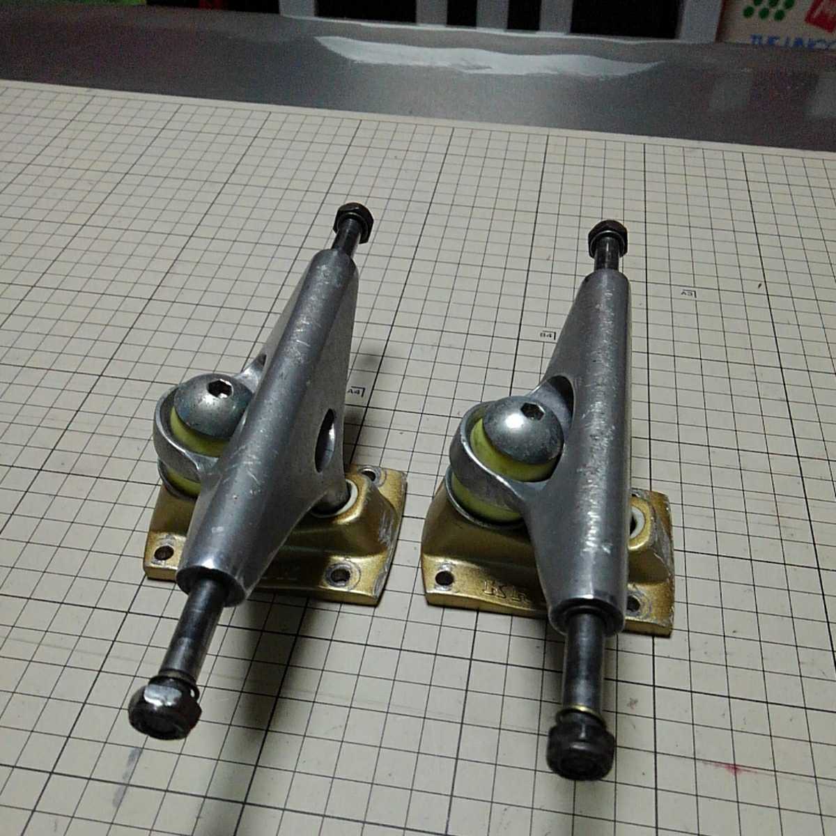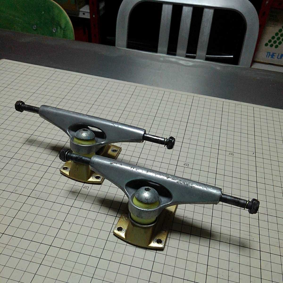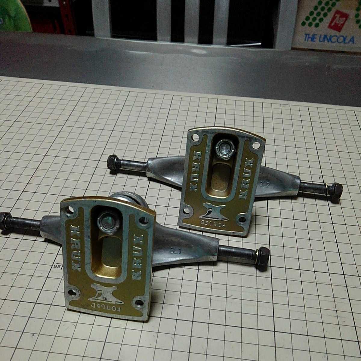 KRUXトラックです。逆キングピンモデル。代えの中空逆キングの出品もしております。自己紹介もご覧ください。ハンガーは傷程度でさほど削れておりません。サイズ約シャフト幅194ミリ×ハンガー高さ60ミリ位のハイトラックです。スケボー関係多数出品中です。