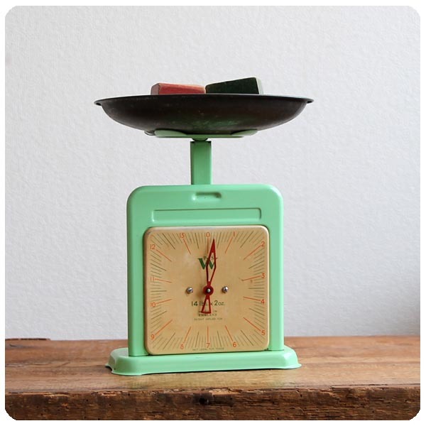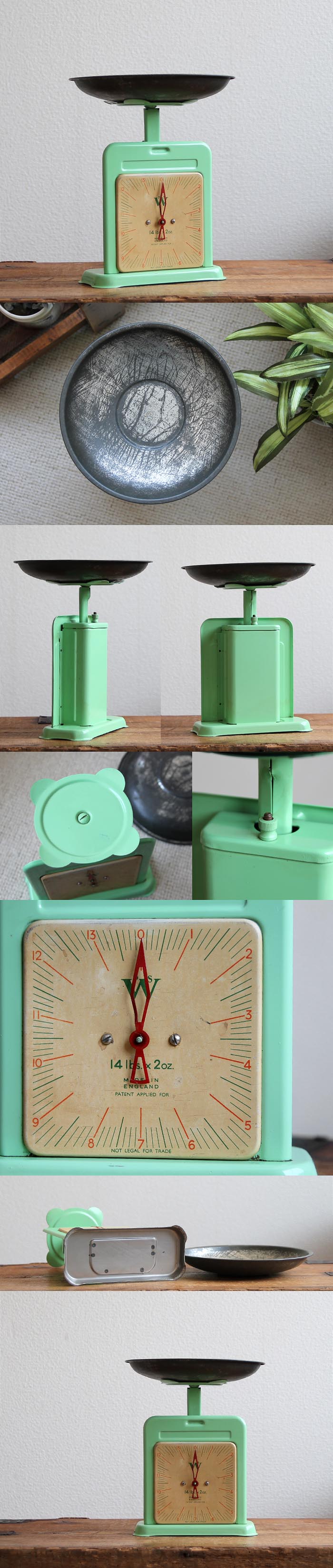 イギリスの蚤の市で見つけた P.W.S社製キッチンスケール。動作確認済みで調節ネジも問題無く動いております。