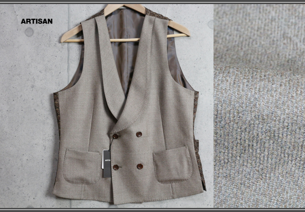 新品アルチザン ウールフランネル地ダブルラペルジレL薄茶4.1万2
