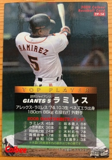 カルビー2009年TOP PLAYERカード ラミレス TP-14です。