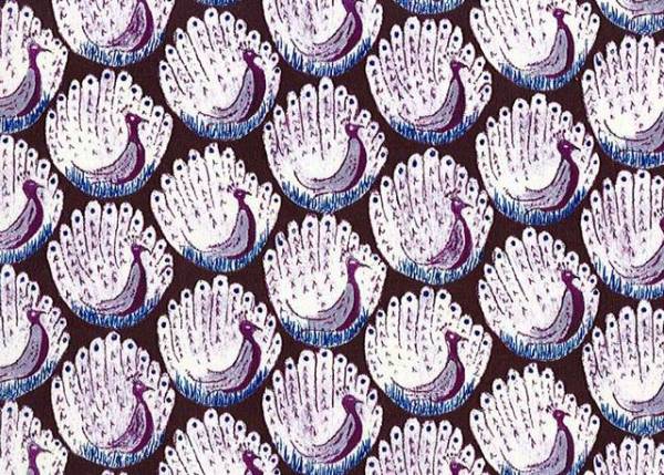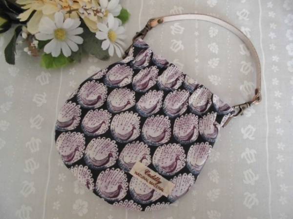 ☆リバティ☆Peacocks of Grantham Hall☆ザ・ピーコックス・オブ・グランサム・ホール☆孔雀☆持ち手付きバネポーチ☆パープル系☆帆布☆
