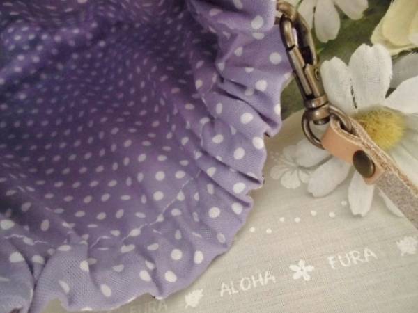 内布には ラベンダーに白のドット柄の生地 ( 綿 100% ) を使っています。