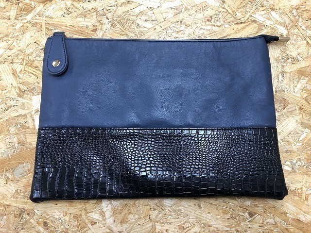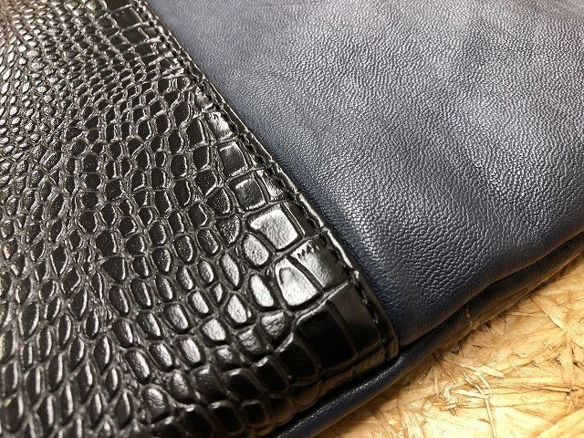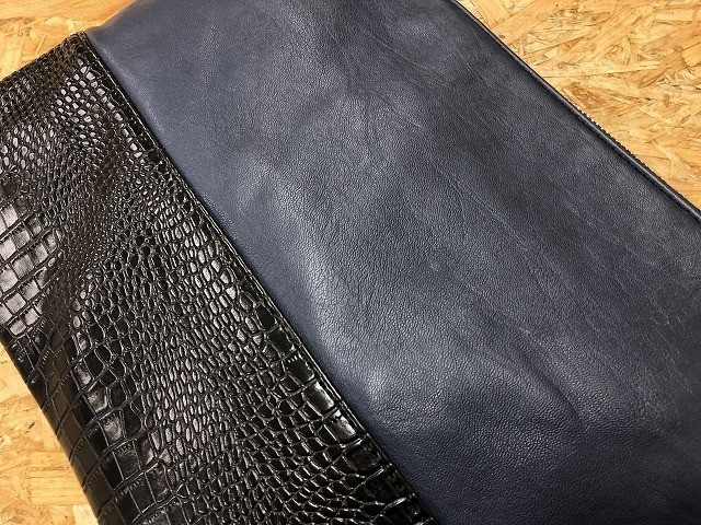 商品タイトル | ※ブランド不明 かばん カバン クラッチバッグ クロコダイル風 ネイビー×ブラック 紺×黒 |