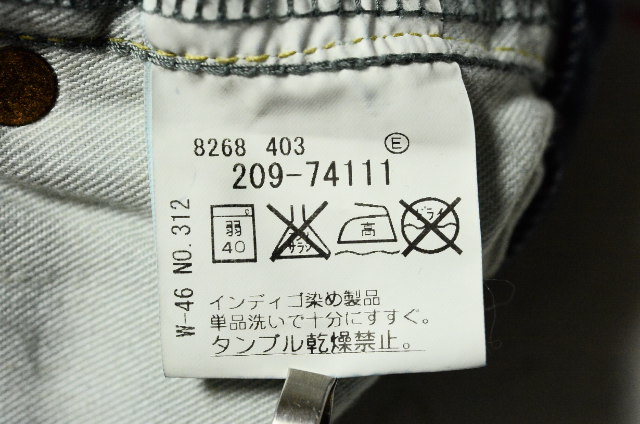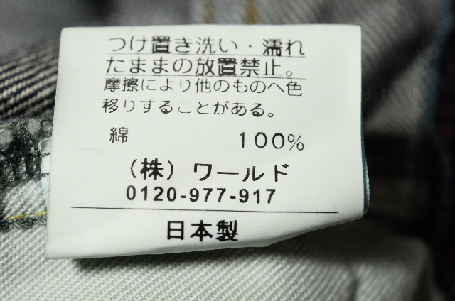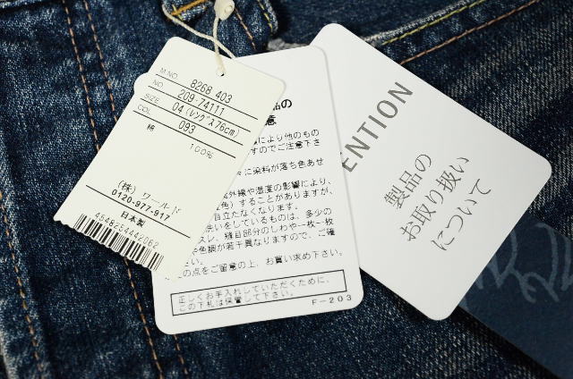 製品個々に特徴や若干の差があり、着用や洗濯により、徐々に加工の程度が進行します(あたり、ほつれなど)。