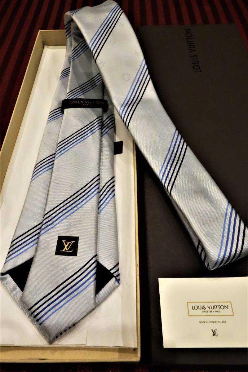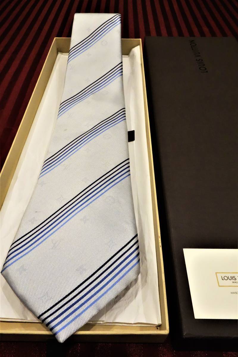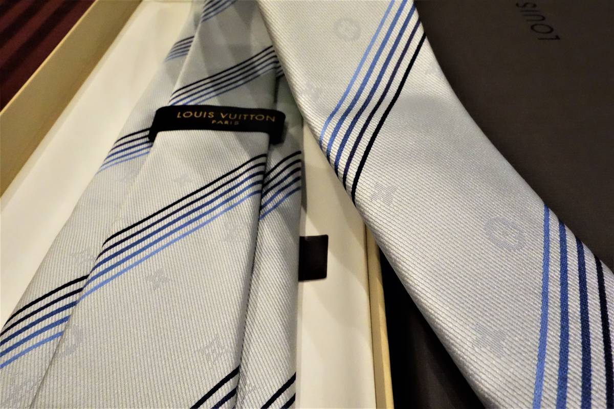 定価3.7万円 美USED品 ルイヴィトン シャドーモノグラムネクタイ ライトブルー系