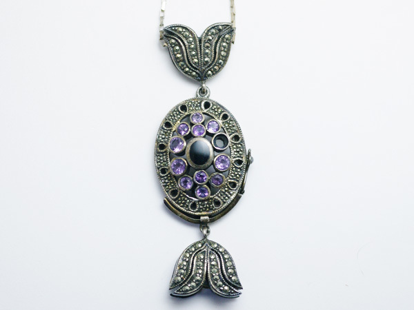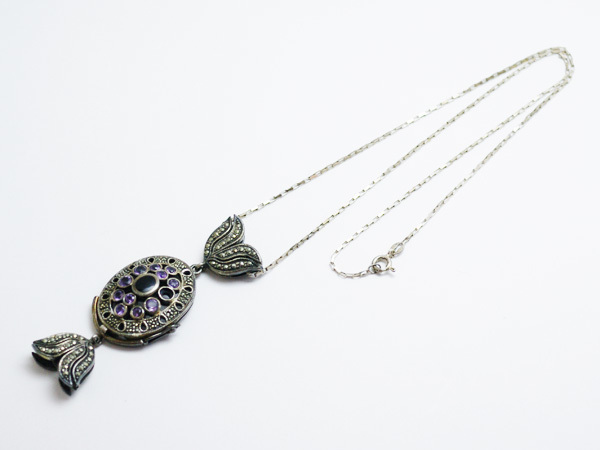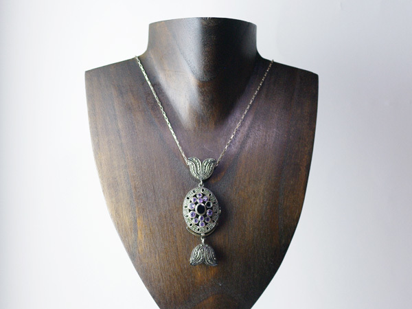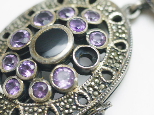 アンティーク シルバー×オニキス×アメジスト ペンダント