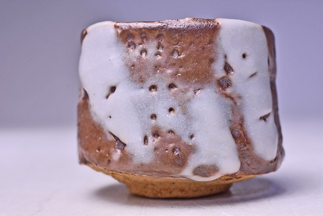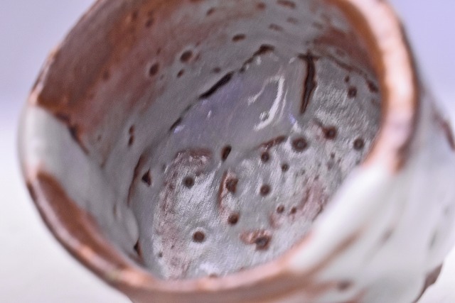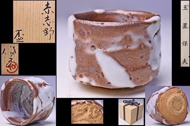 玉置保夫 ★ 赤志野ぐい呑 ★ 共箱栞 ★ 酒器 ★ 厚く流れる長石釉が見事な景色の逸品 上手作 ★