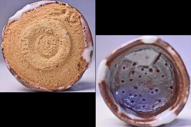 名工 玉置保夫 氏の 作品です。 紫系の 赤志野 に 長石釉が 厚く流れ 見事な 景色となった 逸品です。