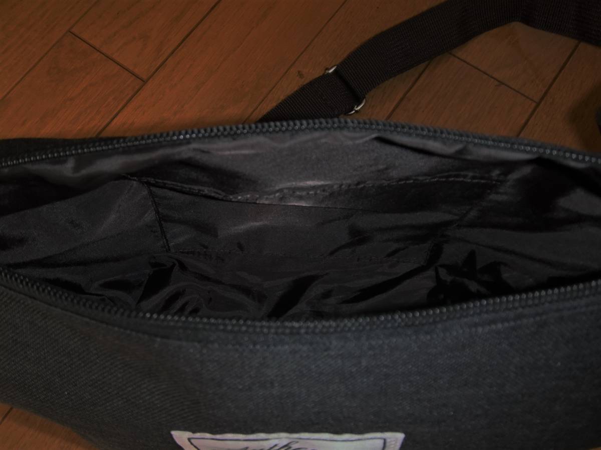 ファスナー開閉、内側にポケット2個、外側にファスナーポケット1個あります。