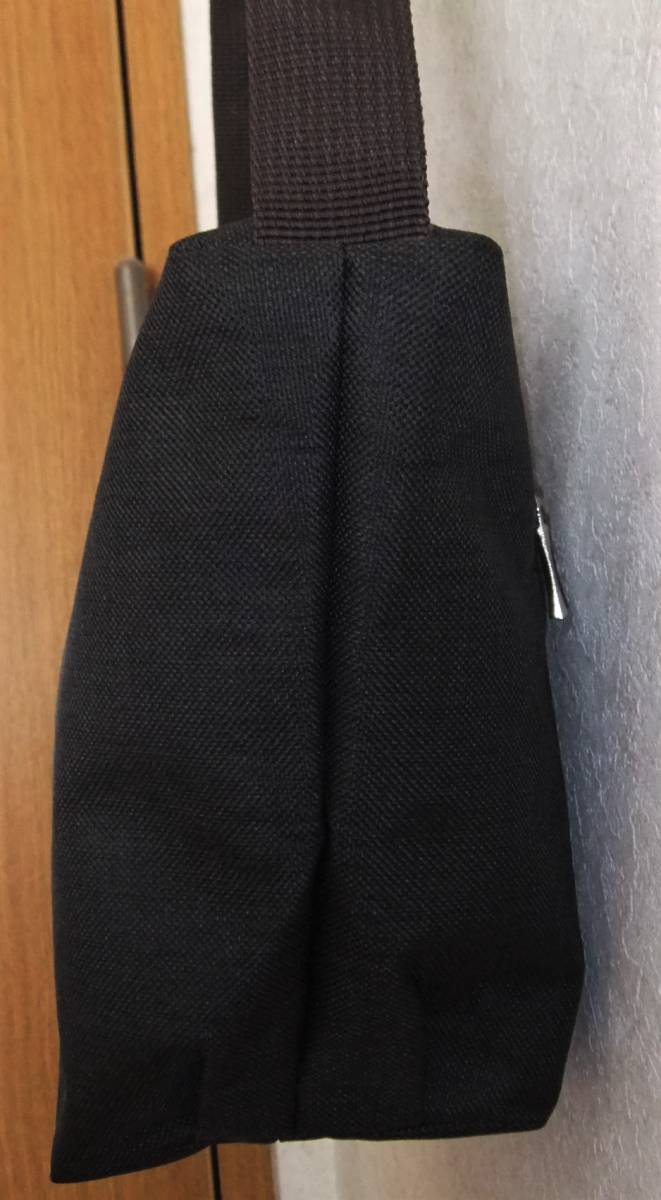 色はクロの表示ですが、真っ黒ではありません。ショルダーひもはこげ茶色です。