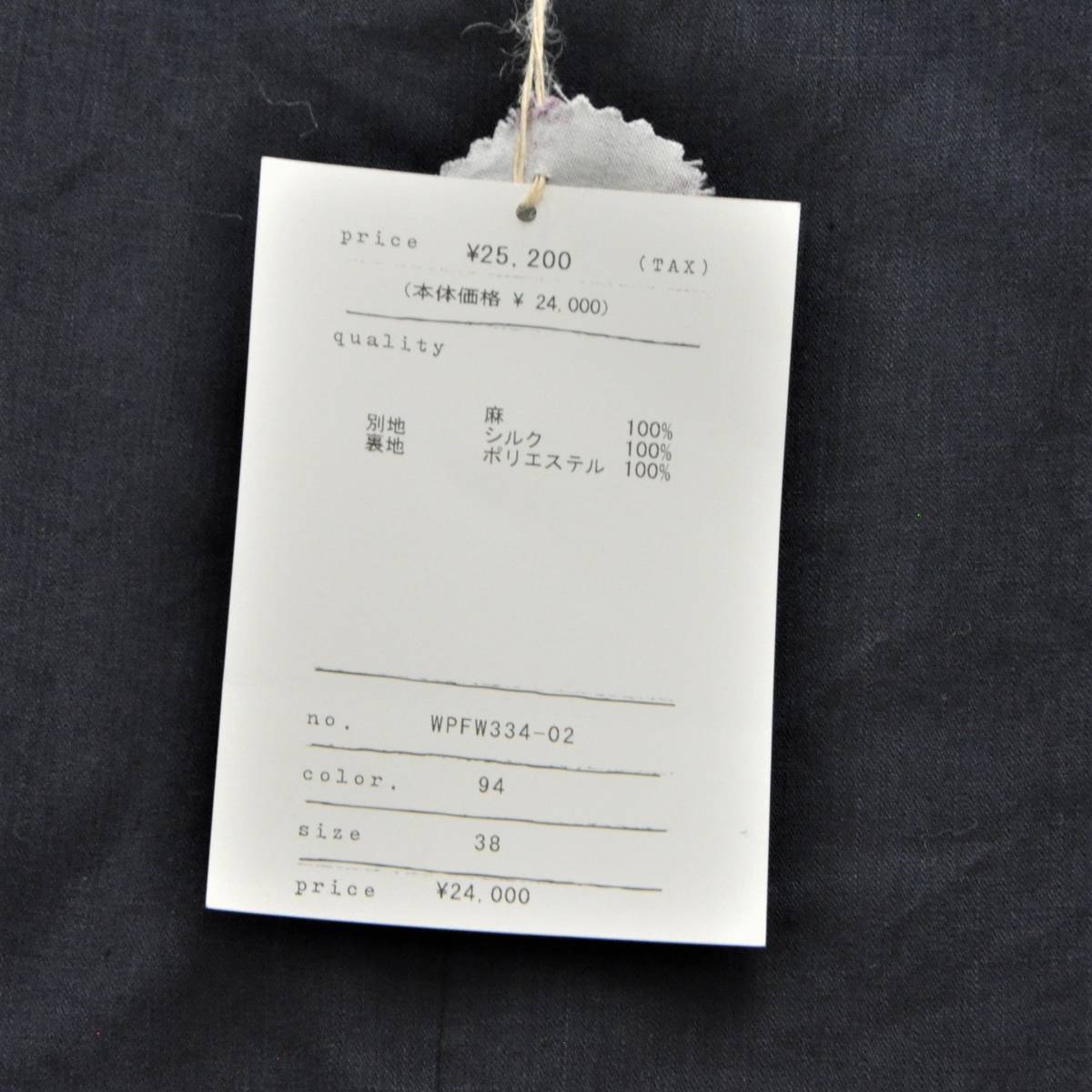 麻100%、裏地:ポリエステル100%