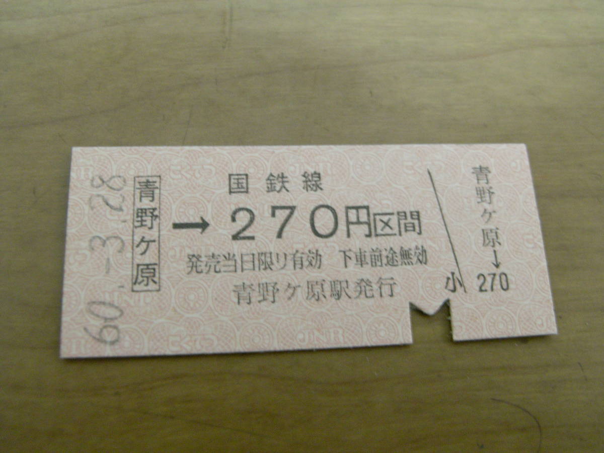 加古川線 青野ヶ原→国鉄線270円 昭和60年3月28日 青野ヶ原駅発行