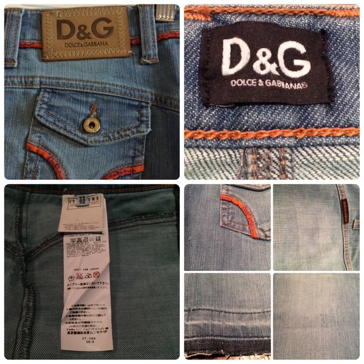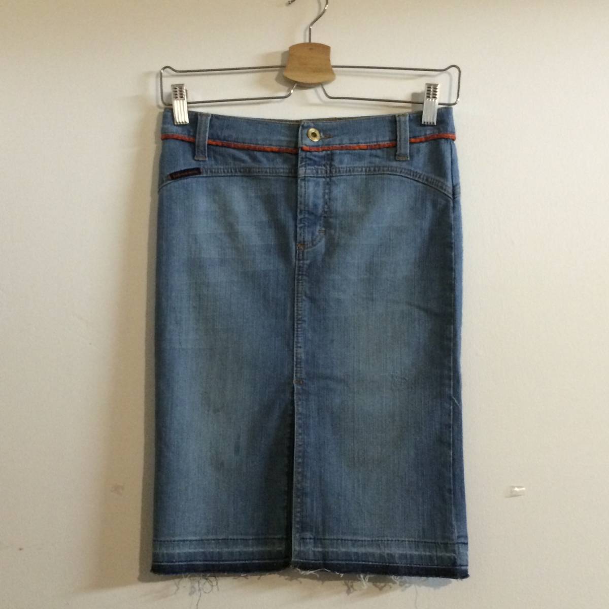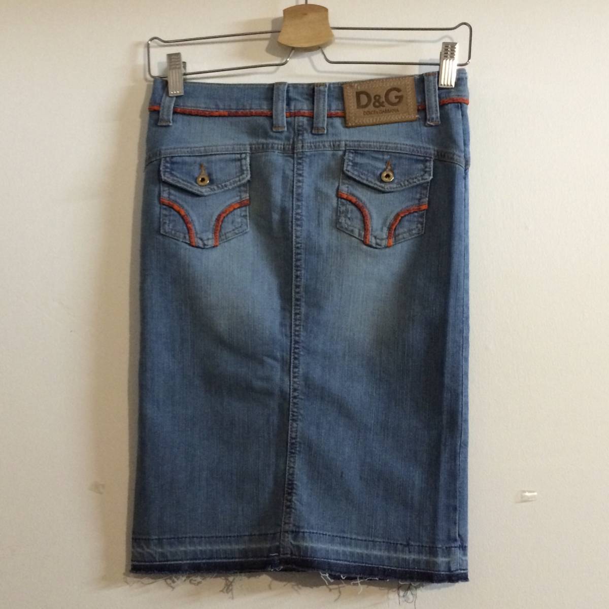 D&G/ドルチェ&ガッバーナ ロゴパッチ付きデニムタイトスカート/ホツレ加工
