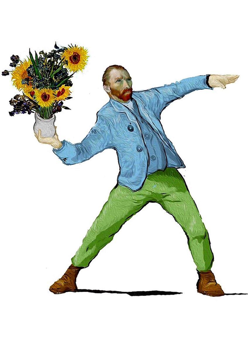 バンクシーとゴッホのアート作品をマッシュアップしたおもしろおしゃれパロディデザインです。