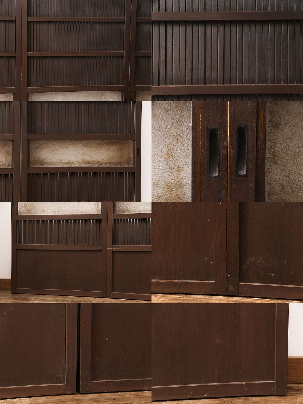 R-051478 和製アンティーク ダイヤガラス 幅広の縦格子が珍しい格子戸4枚セット(引き戸、建具)(R-051478)