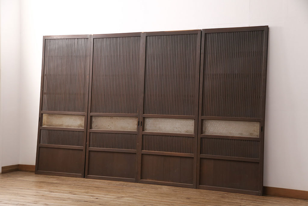 和製アンティーク ダイヤガラス 幅広の縦格子が珍しい格子戸4枚セット(引き戸、建具)(R-051478)です。