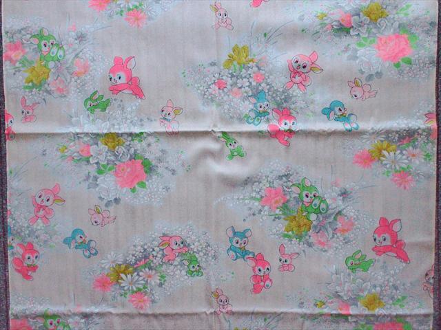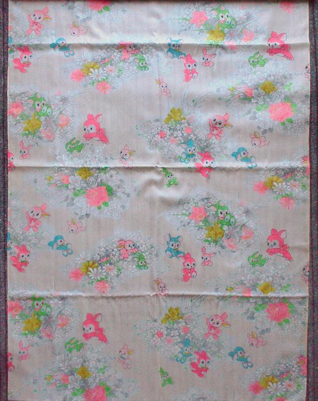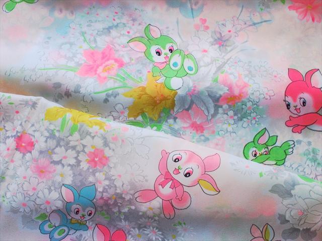 レトロビンテージ生地*可愛いお花うさちゃん尽くし・ピンク・75×100☆リメイク手芸布ハギレコレクション