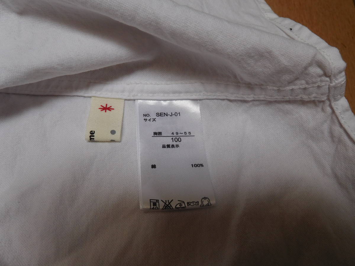 (C)GITA 綿100% 白シャツ ボタンホール飾り糸(ネーム無し)100サイズ ※ごぼう茶サンプル付き※【同梱:切手で80円引き】
