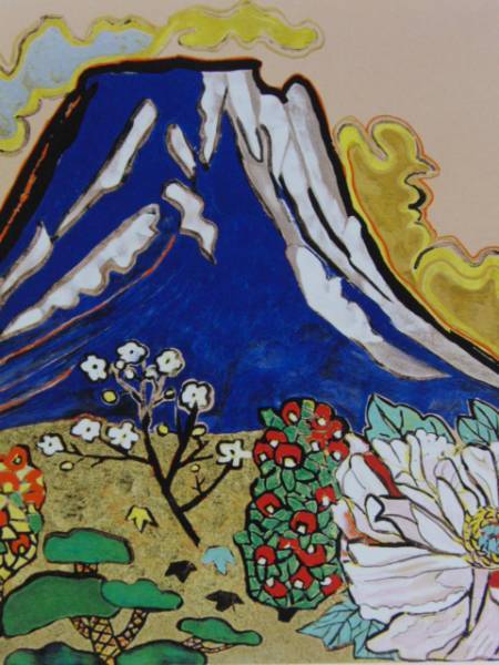 片岡球子、【花咲く目出度き富士】、希少な額装用画集より、新品額装付、状態良好、送料込み