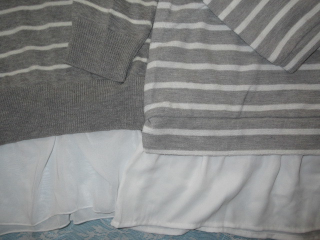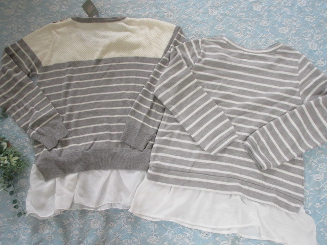 ![]() ![]() ☆新品のサイズ【M】の裾にフリルがついた長袖ボーダー柄の可愛い系チュニック2枚組です。左側は生成り色とボーダー柄の切り替えで春秋のセーター生地の綿45%・アクリル55%、右側は襟もとにパール調飾りのついた薄手のグレコ調生地の綿35%・ポリエステル65%です。☆宅急便の送料無料です。 ☆実寸:左:身幅47cm、着丈66cm、右:身幅47cm、着丈66cm ![]() ★ヤフーかんたん決済 ![]() ★ヤフネコ宅急便(追跡あり、時間指定可能、匿名発送)のみ、送料無料で対応します。 ![]() ●その他にもいろいろ出品しておりますので、よかったら、ご覧下さい。 ●取りおきで、まとめてのご入金、発送も可能です。 ○返品について:商品説明の間違いなどこちらにミスがあった場合、又は不良品に限り、商品到着後7日以内にご連絡いただいた場合のみ、返品に応じます。色のイメージが画像と違うなどの理由による返品には応じておりません。 ![]() |