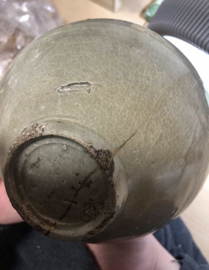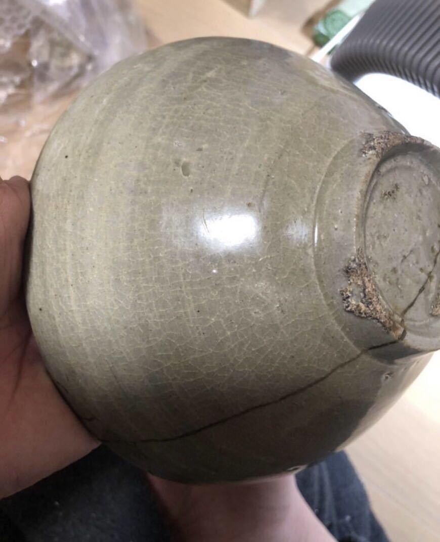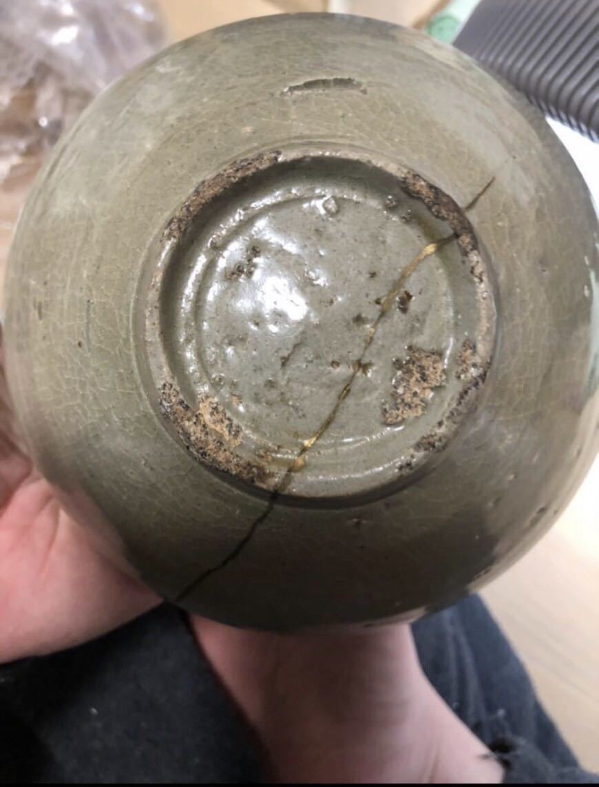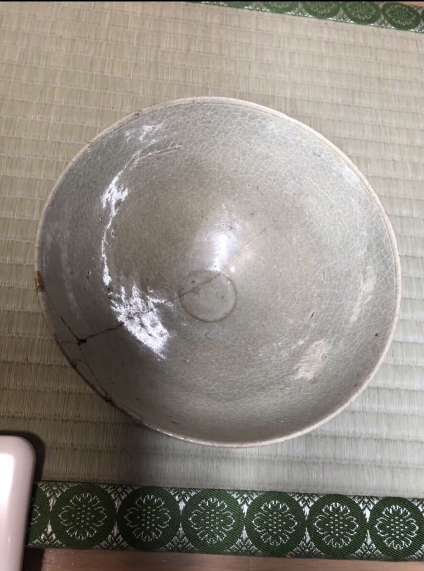 寺院引き取り 高麗 青磁 茶碗 李朝 金継 口径16.5 高さ8 本歌