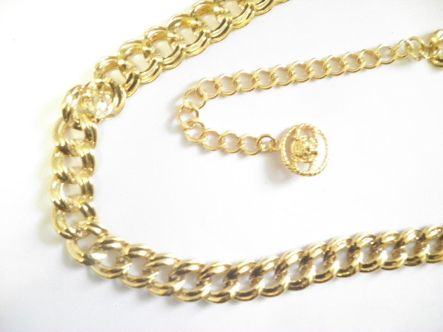 【SALEセール】☆新品☆下げ札なしです!!(モニター環境により色が写真と少し異なる場合があります) ☆サイズ 96cm(全長) ウエスト長さ 約 77cm+(アジャスターチェーン 19cm) 幅 約 2、4cm※測る場所により多少の誤差が生じます 重厚感のある素材で高級なデザインです。 |