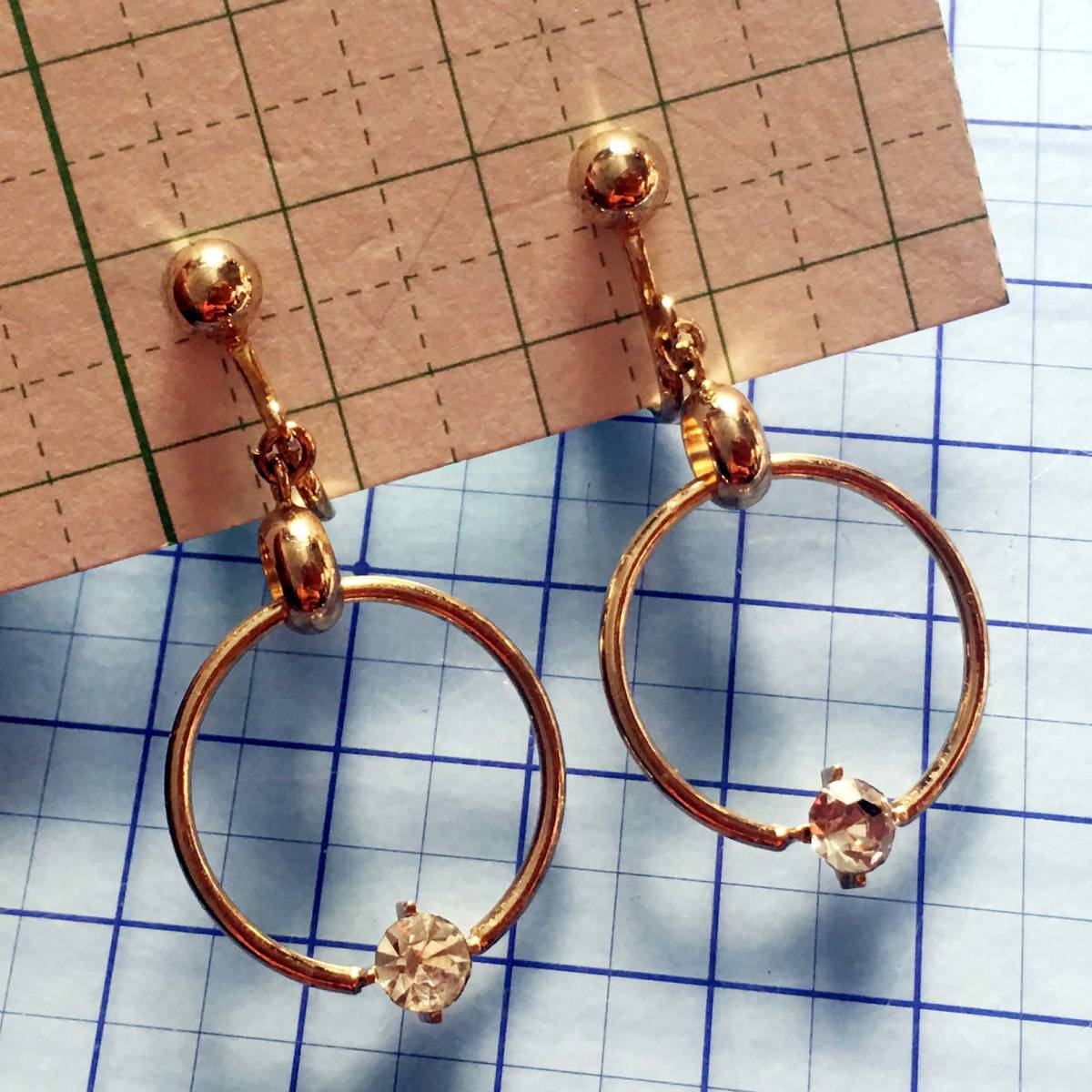美品 MELODY刻印 ラインストーン ゴールド イヤリング O.4792