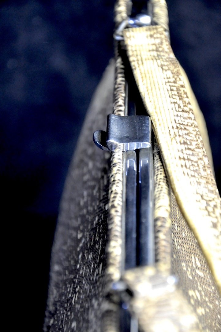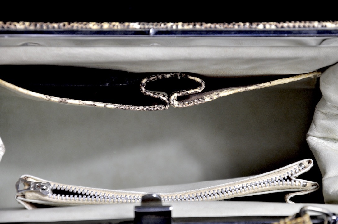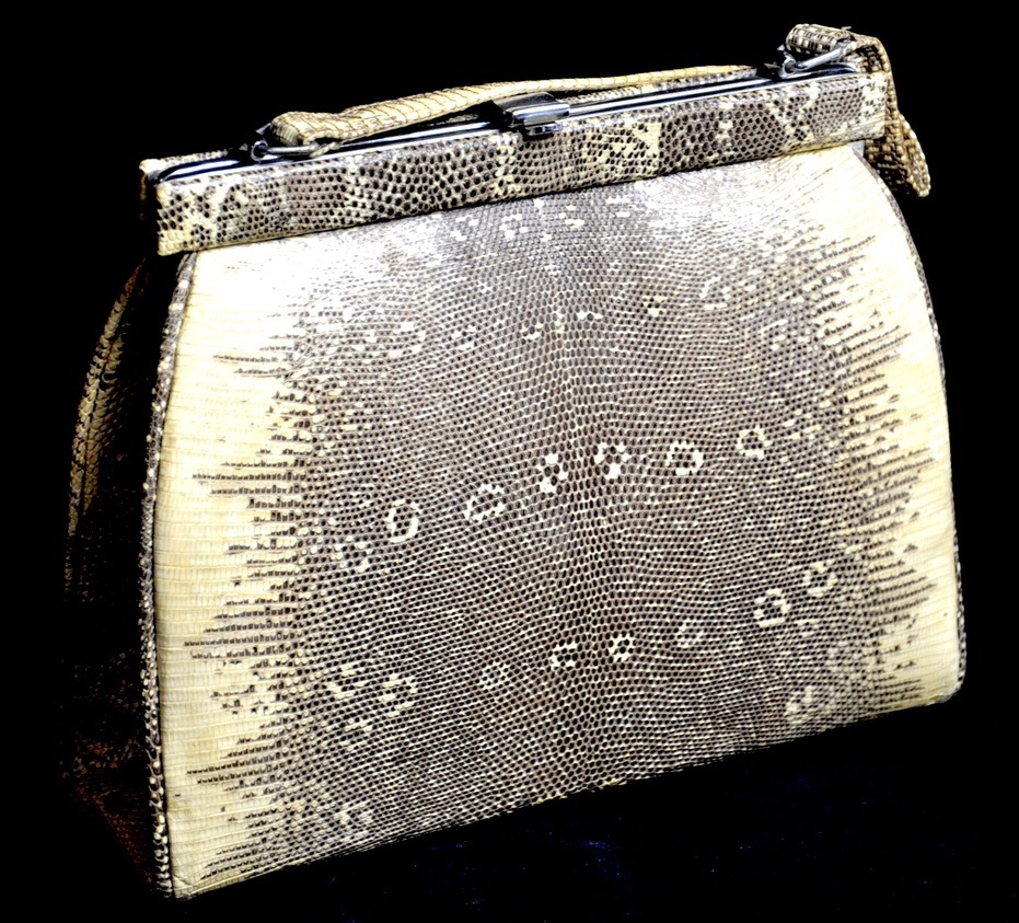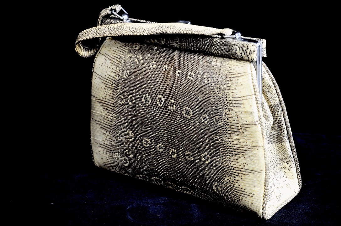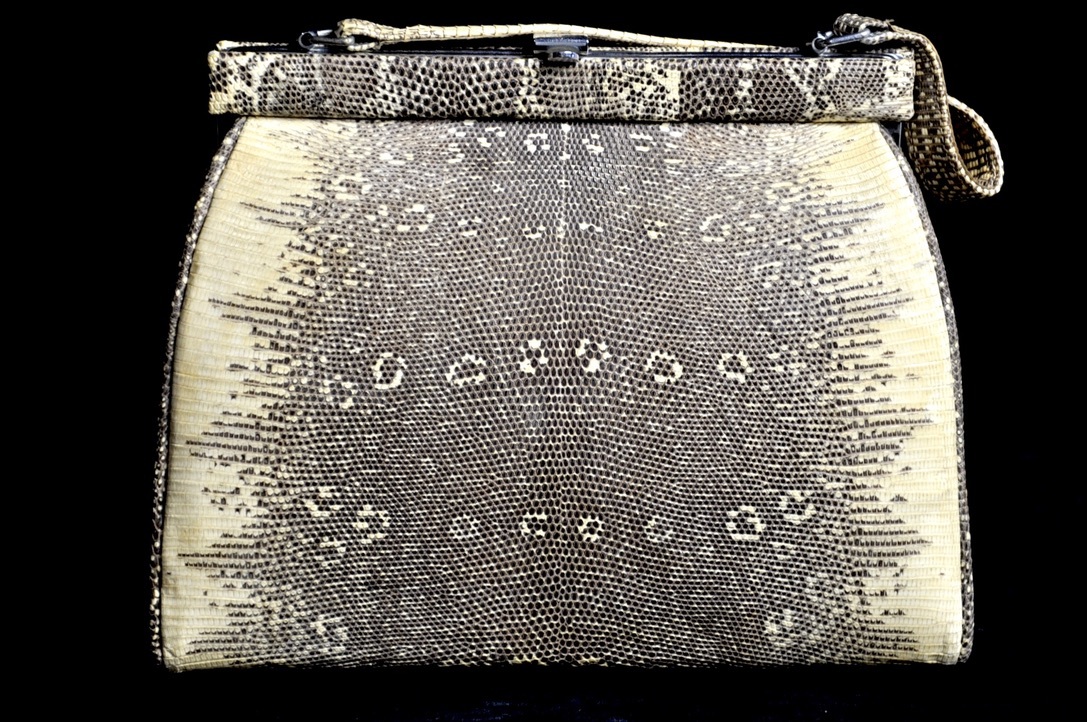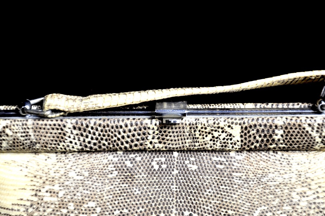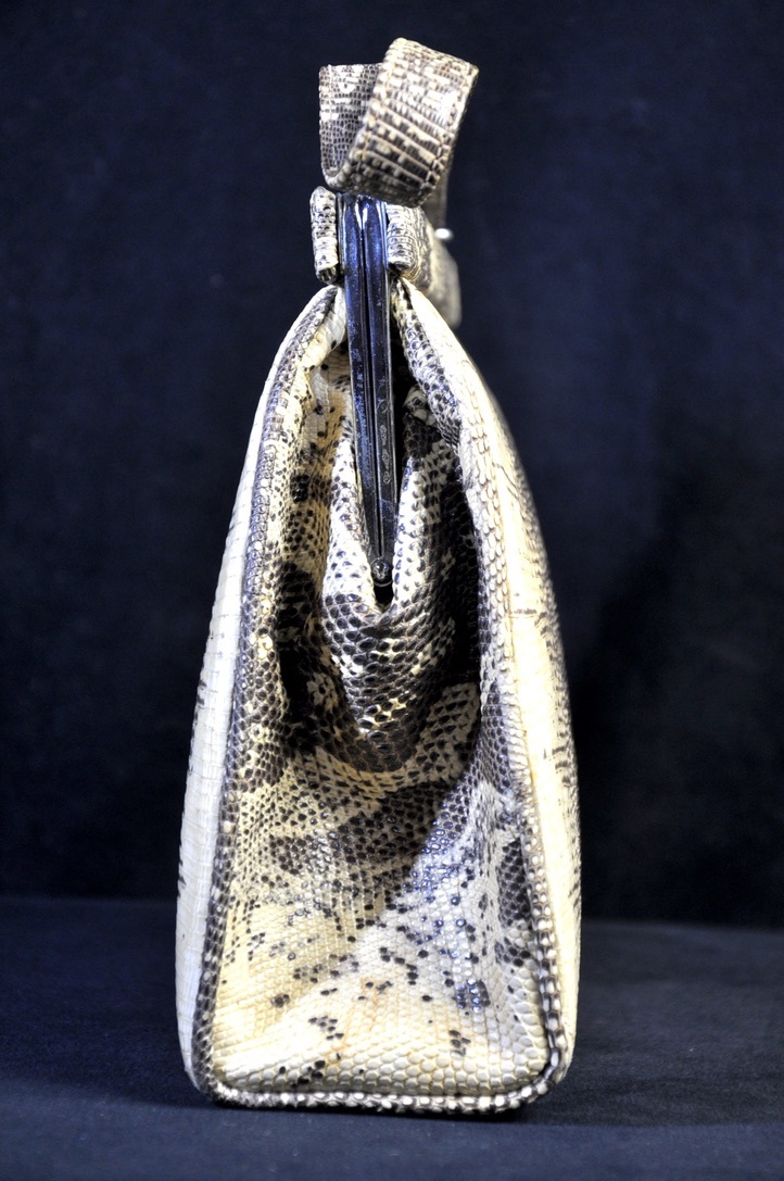 ビンテージ 1970年代 パイソンフェイクレザー ハンドバッグ 直径28cm 奥行8cm 高さ持ち手込み36cm 経年の革の味わい! YAY